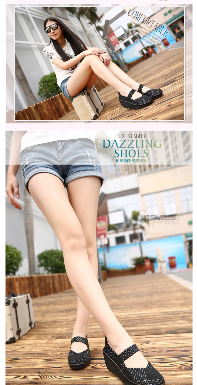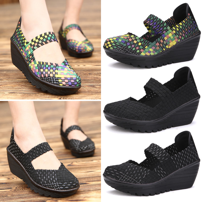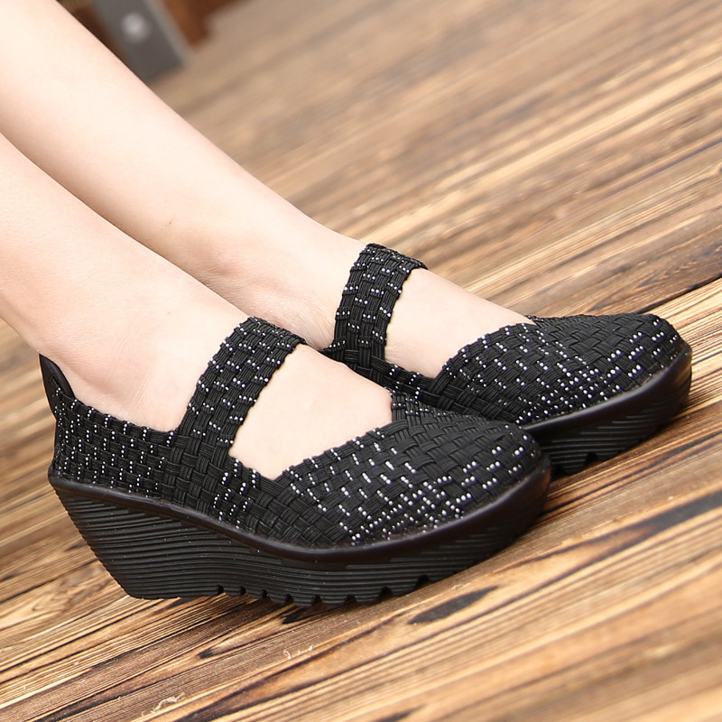 Тканые туфли, повседневная обувь, туфли на танкетке, туфли для кадриль, туфли для мам с мелким горлышком, дышащие сетчатые туфли из старой пекинской ткани, сандалии, женская обувь