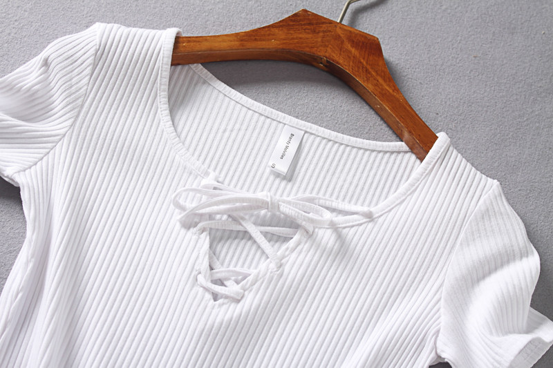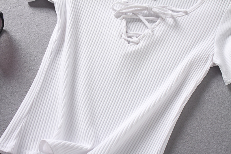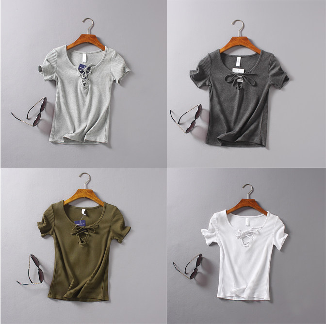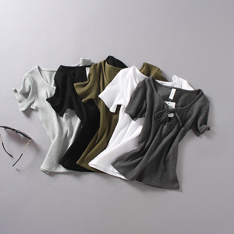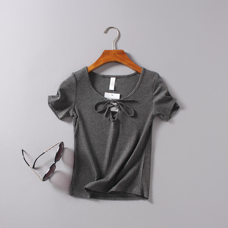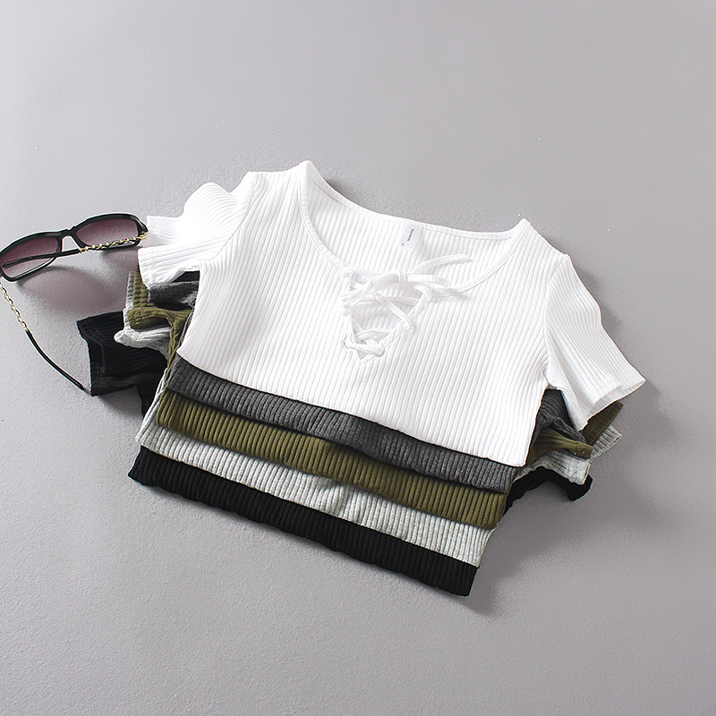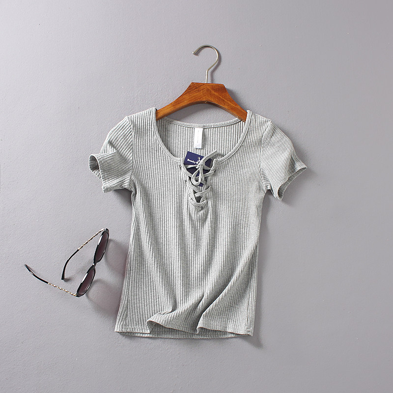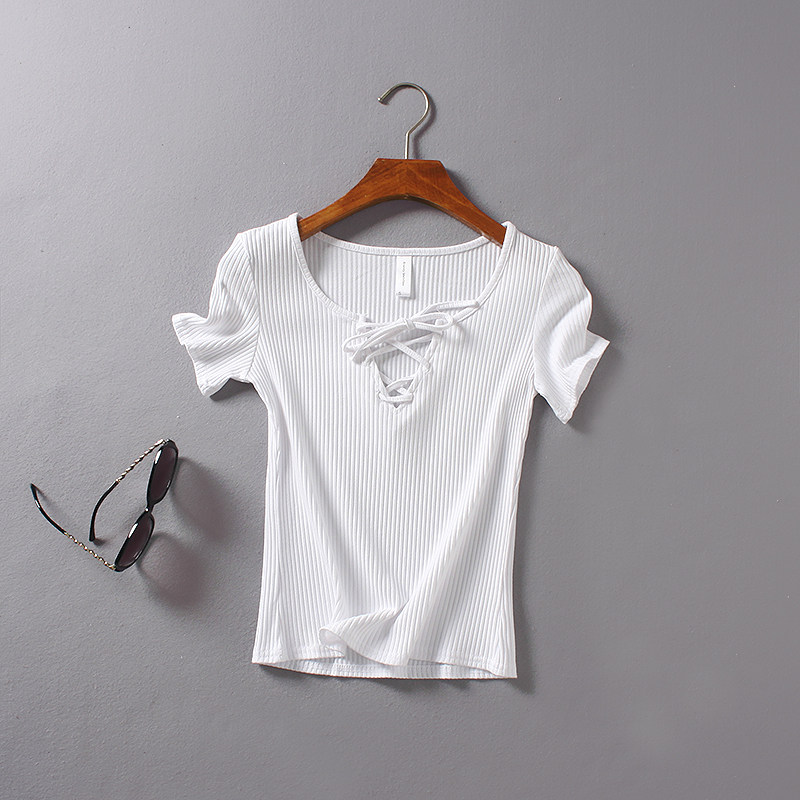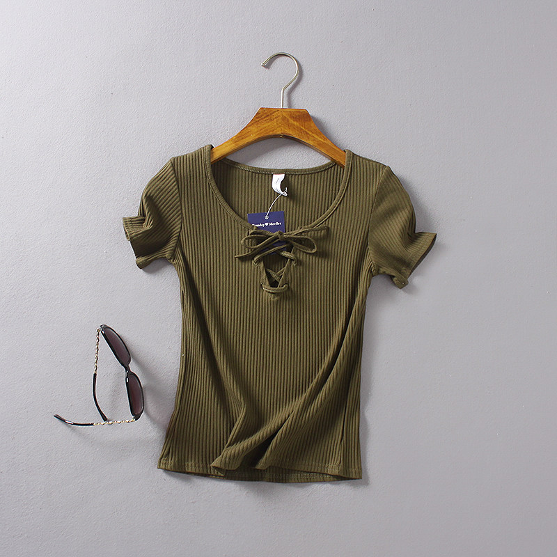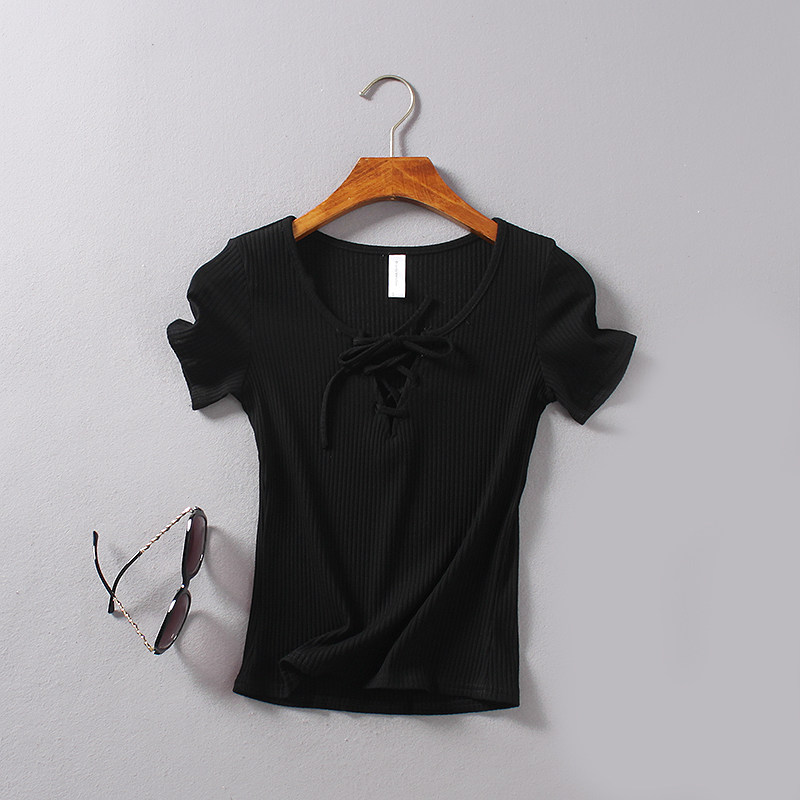 (Трансграничная торговля), ретро летний сексуальный эластичный ремень, футболка с коротким рукавом, V-образный вырез, облегающий крой