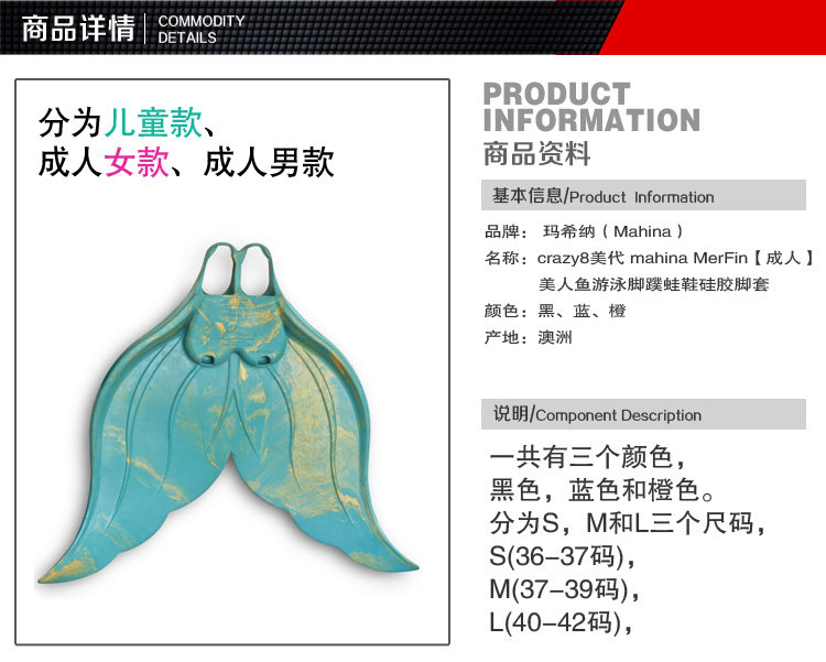 Основываясь на качеством и дизайне продукта, и концепции, стоящей за ним, MFI не только использует ноги русалки Махины во всех курсах русалки.И призовите всех русалок и дайверов, чтобы выбрать этот продукт, который несет любовь между людьми и морем.