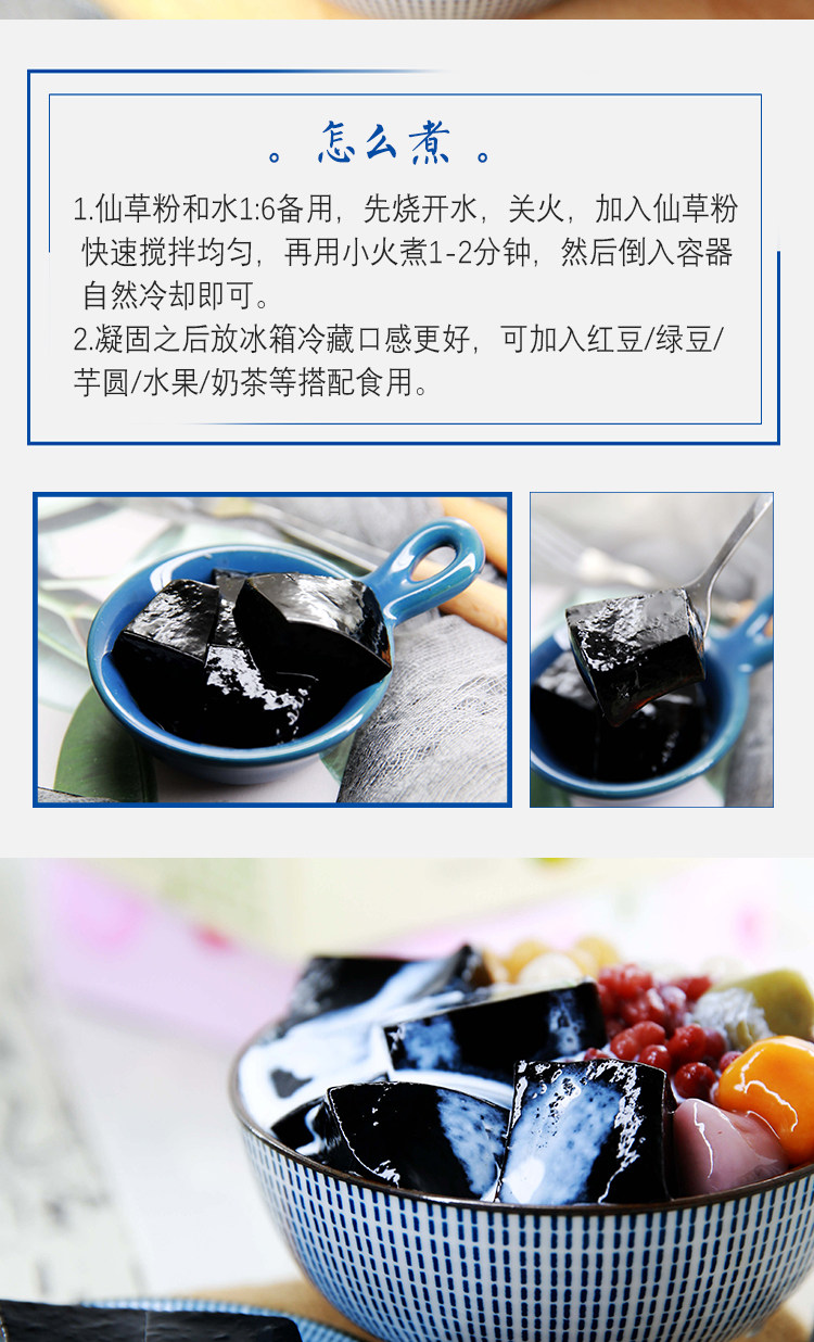 1. Рекомендуемый метод производства сжигания сказочной травы: кипящая вода, порошок и вода в соответствии с соотношением 1: 4 (доля 1: 6 на упаковке, но легче добиться успеха в 1: 4) Поставьте в горшок В течение 2-3 минут (в течение 2-3 минут (постоянно перемешайте во время приготовления пищи), а затем вылейте в соответствующий контейнер, чтобы остыть и затвердеть, чтобы поесть.
