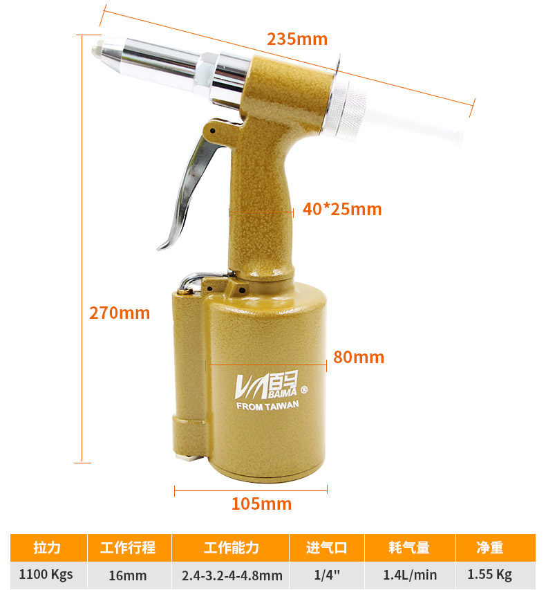 Тайвань Байма BM-A001A Стротые гидравлические пневматические пневматические пневматические пушки