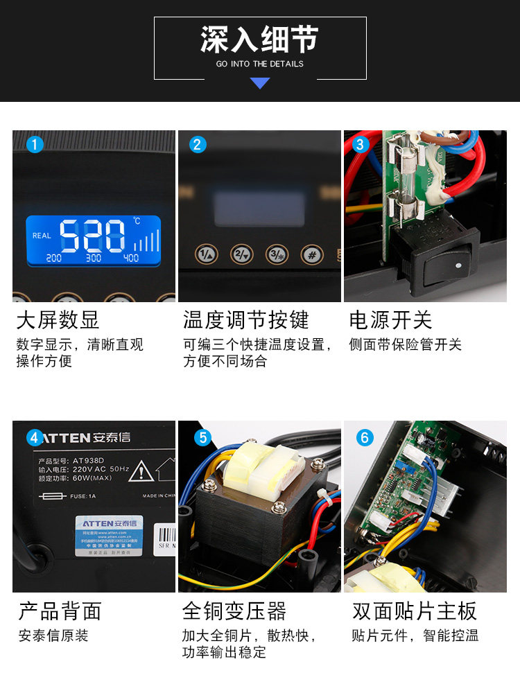 Antaixin at938d 937a 980e Количество антистатической сварки мощности 60 Вт бесцветная температура бесцветных.