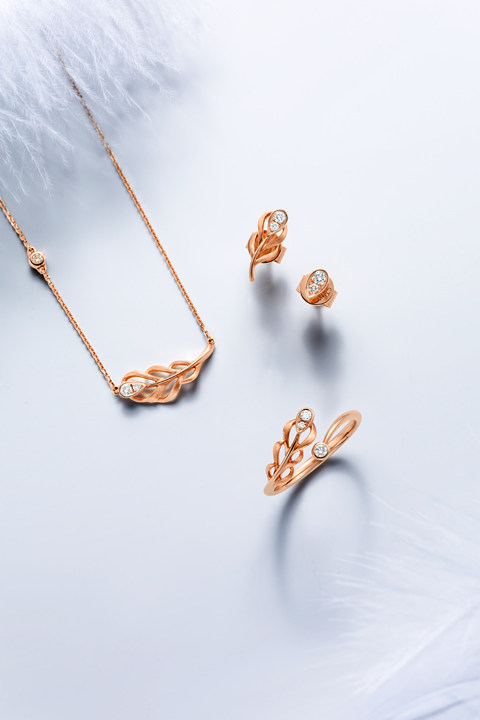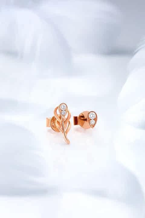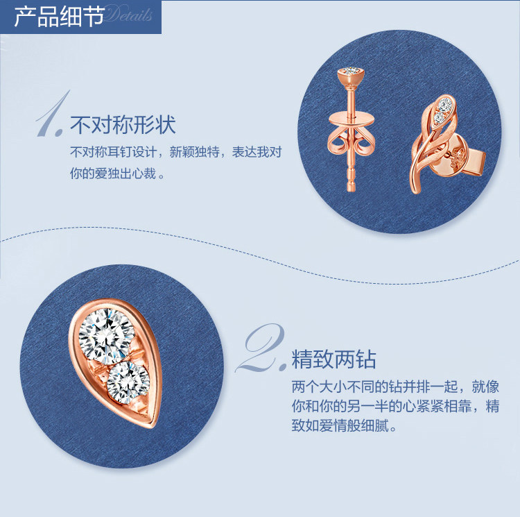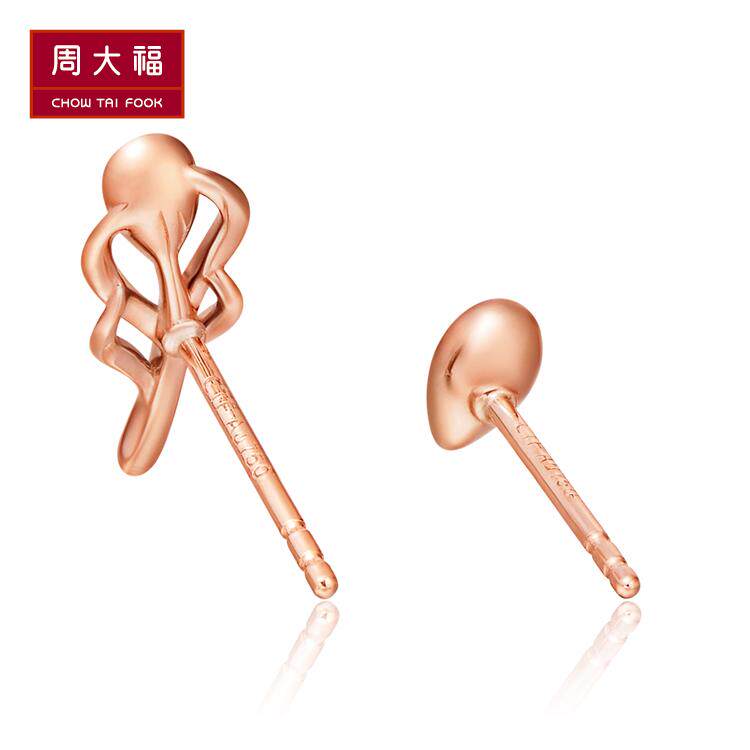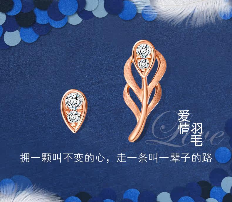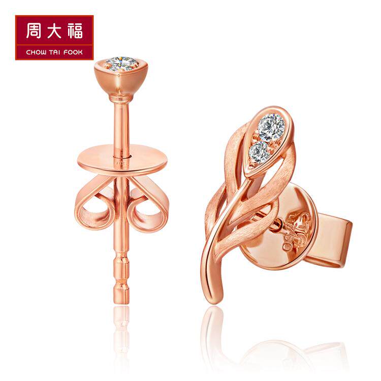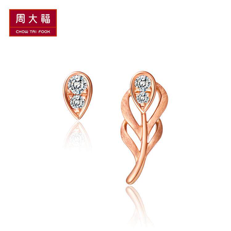周大福 Y Times Love Feather Series 18K Golden Gold Diamond Serrings U156172 Zhenpin