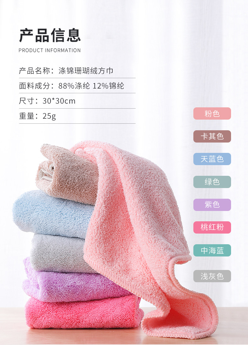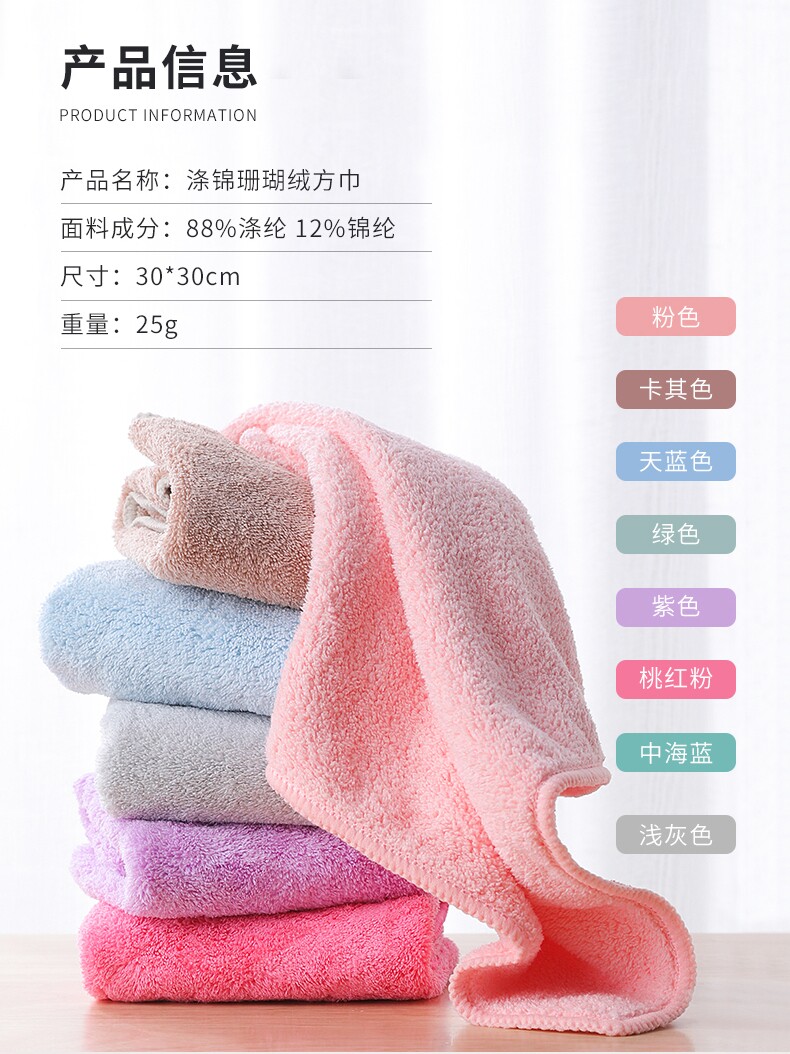 Хлопковое полотенце для умывания, квадратный мягкий коралловый шарф, 6 шт, хорошо впитывает воду
