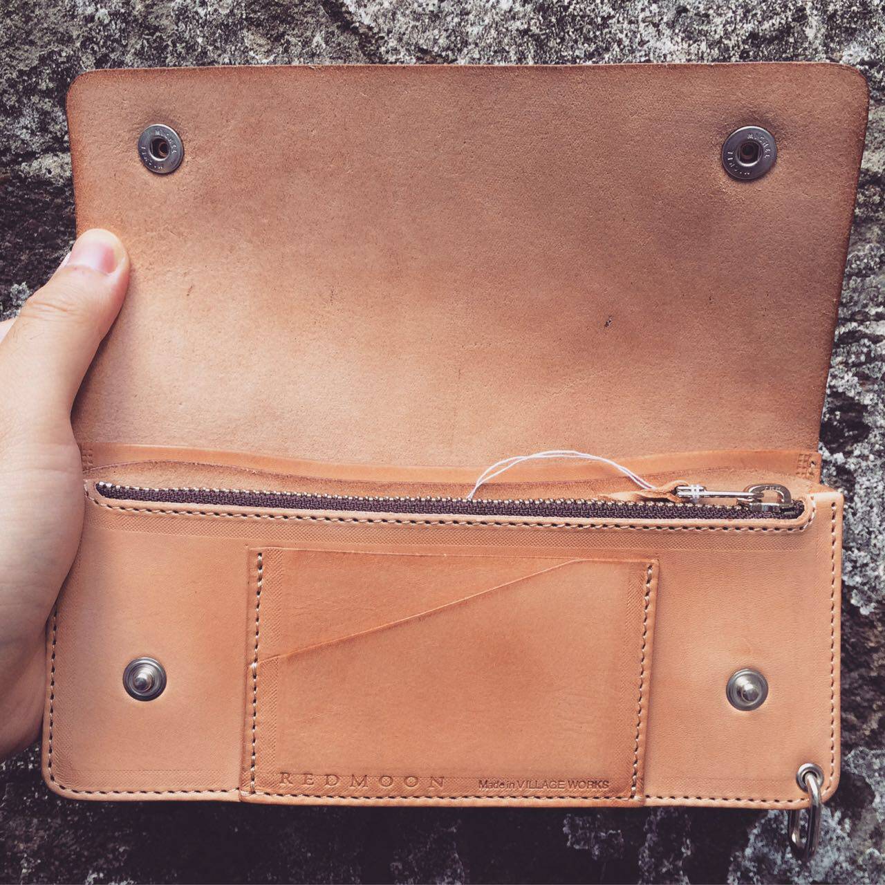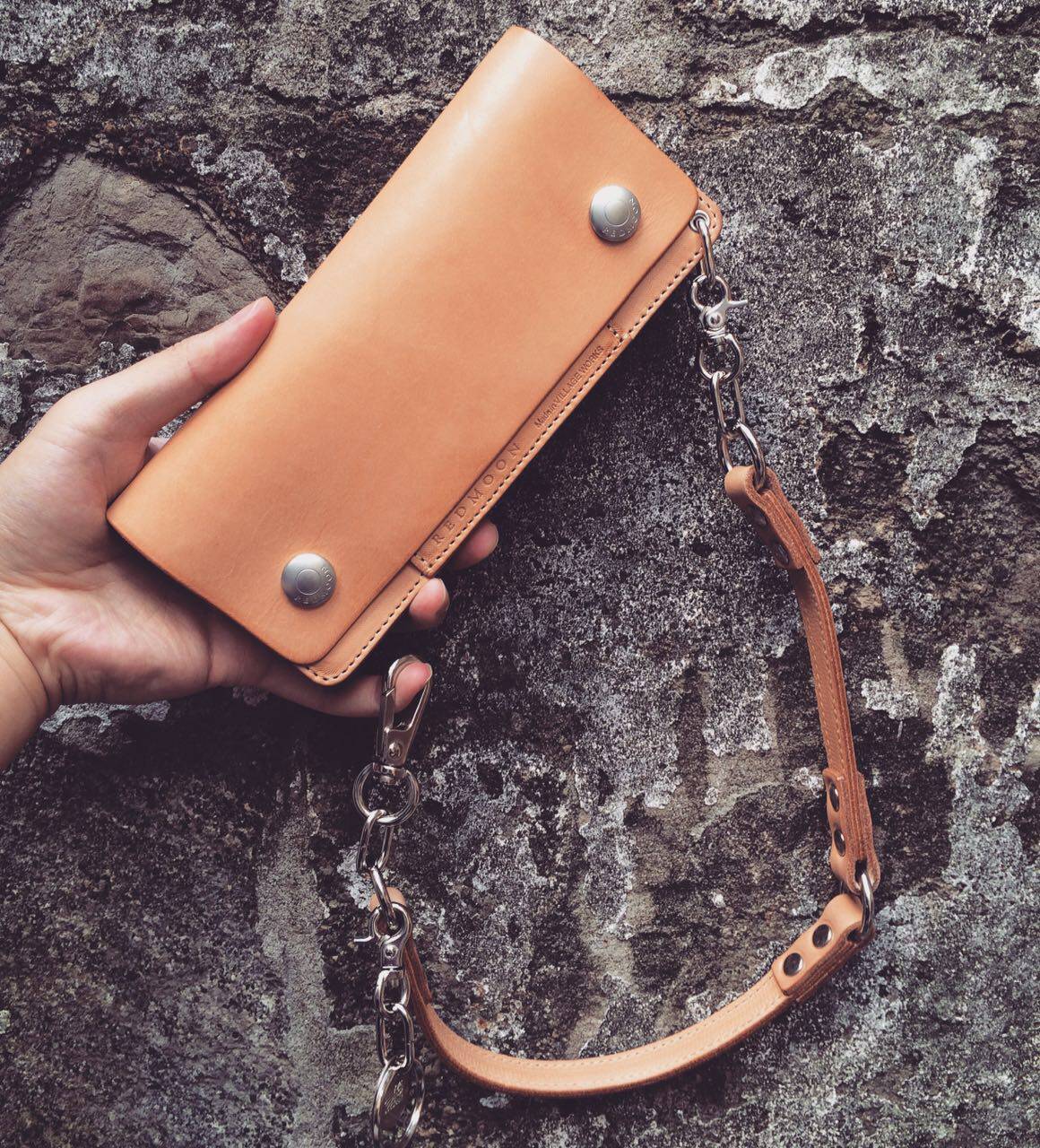 Японская подлинная красная луна красная луна Tw02-средняя кожа кожая кожи мужской женский длинные колеса Американские длинные локомотивные кошельки