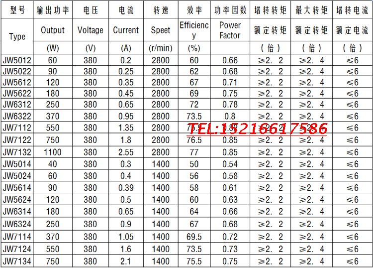 Поставляется в день YS7112 Мотор 380V 550W 2800 об / мин JW71112 Алюминиевая оболочка Трехфазный двигатель