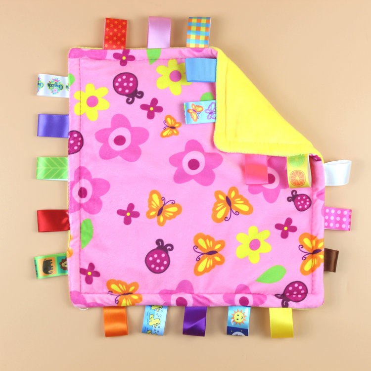 Текстура успокаивающего полотенца представляет собой мягкий и гладкий бархат,Добавить теги ткани с кольцом с яркими цветами и различными текстурами,Улучшите развитие прикосновения вашего ребенка.Качество изготовления очень изысканное, и это определенно стоит!