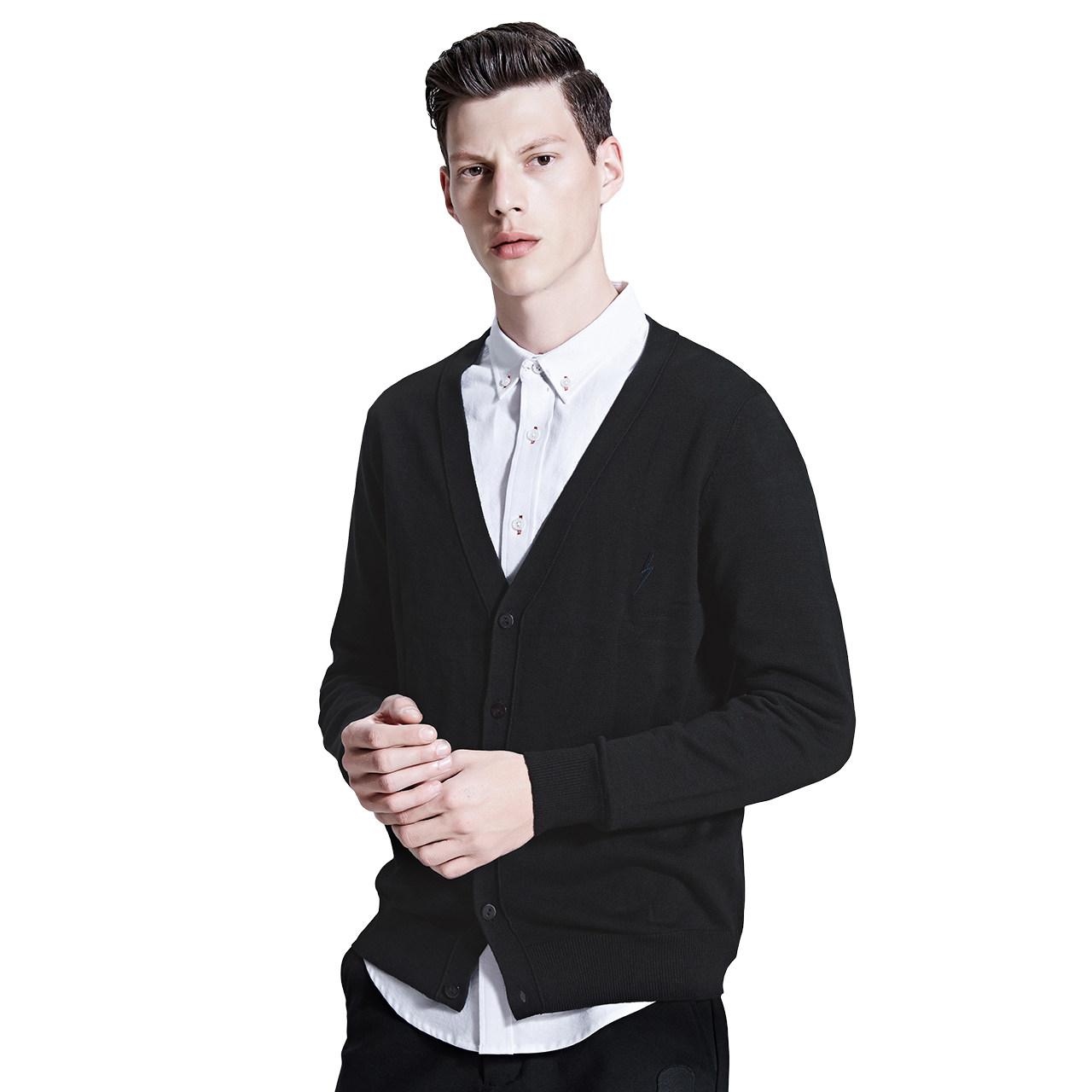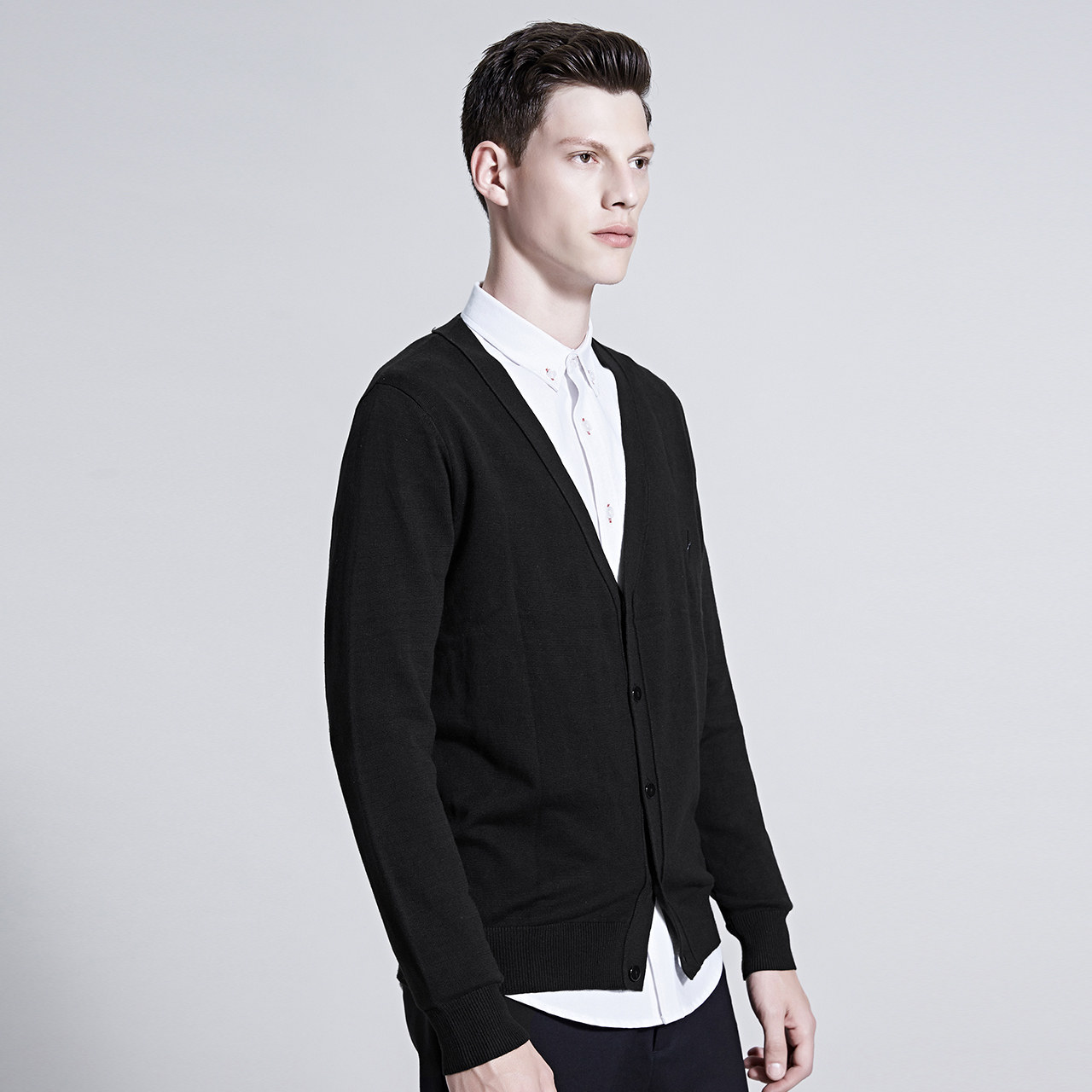 Трикотажный свитер, черный кардиган, V-образный вырез, подходит для подростков, в корейском стиле