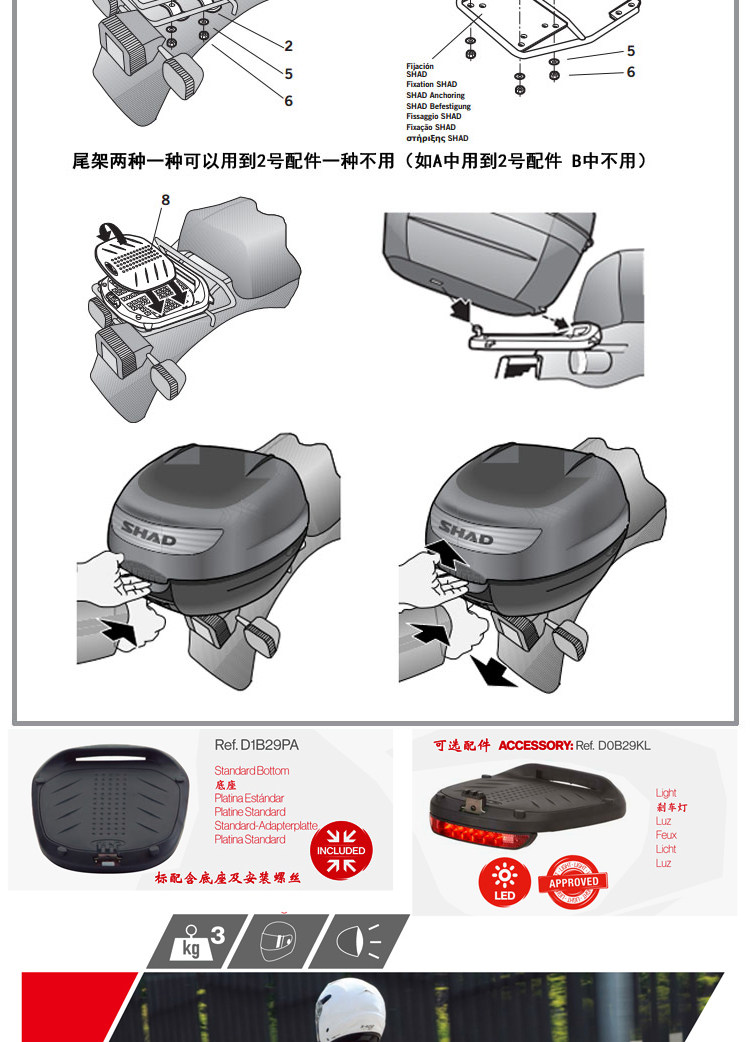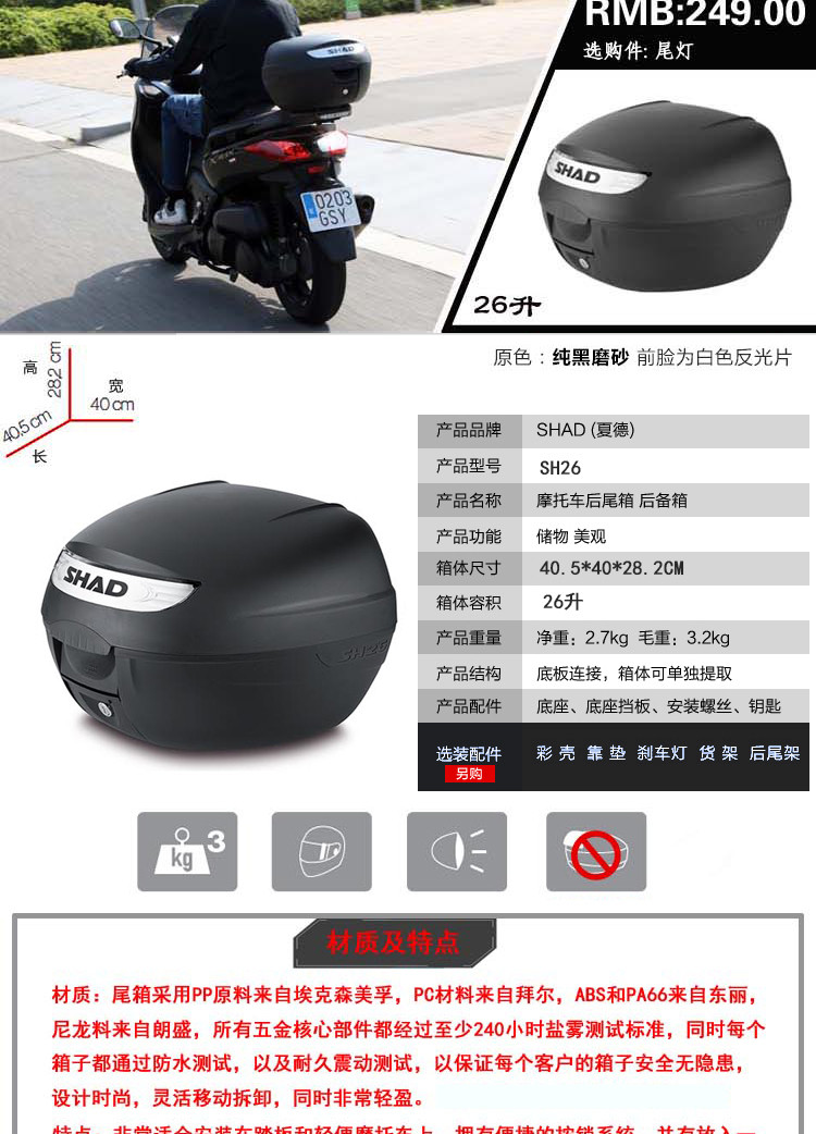 Шад Шия XIADE SH26 GM Мотоцикл задний багажник Электро -транспортное средство задняя коробка задней коробки для хранения инструментов