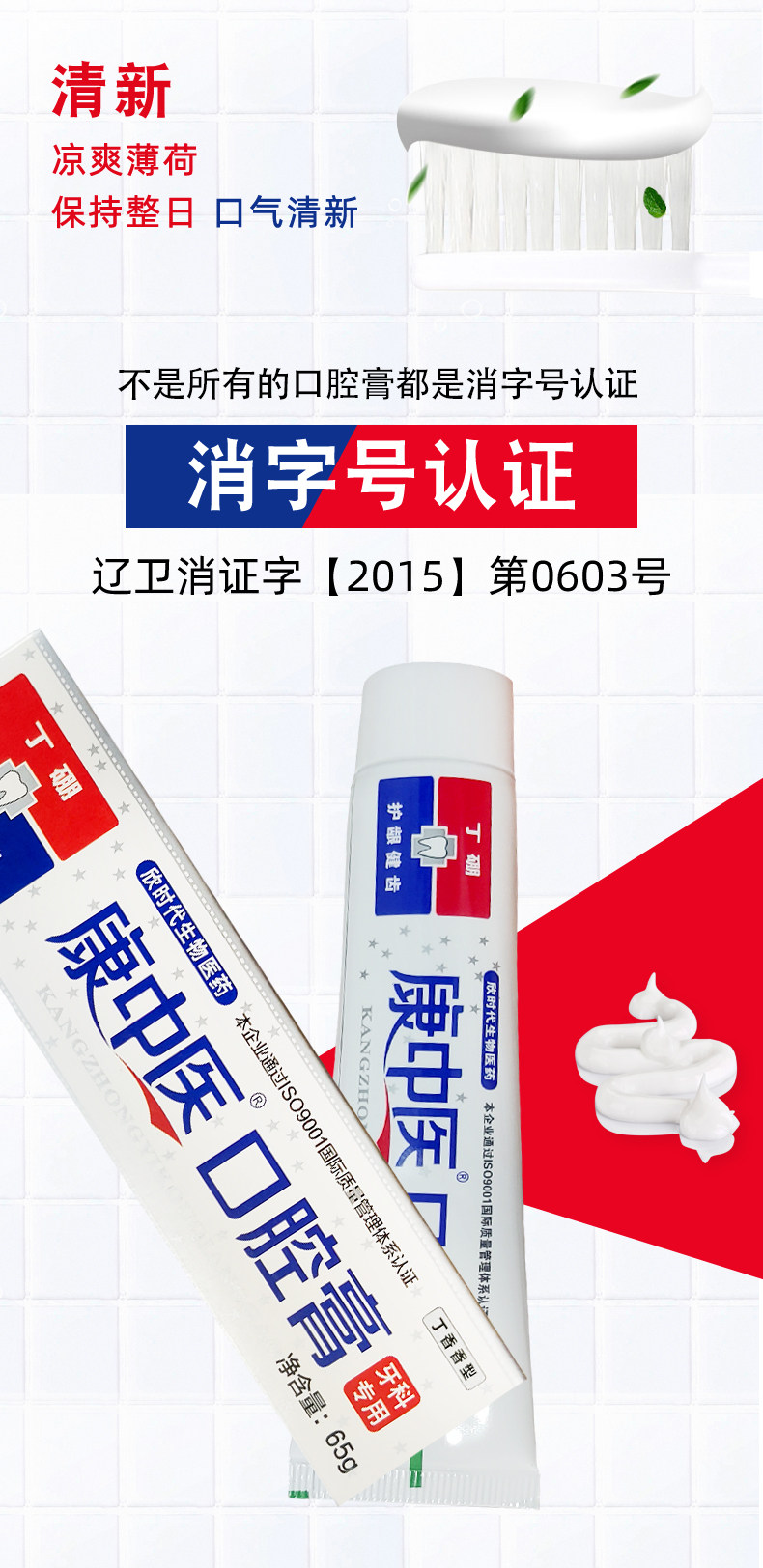 康中医 Паста для полости рта бутилбор, 130 г x 6 шт., свежее дыхание, очистка полости рта, защита десен, уход за пародонтом, семейный набор