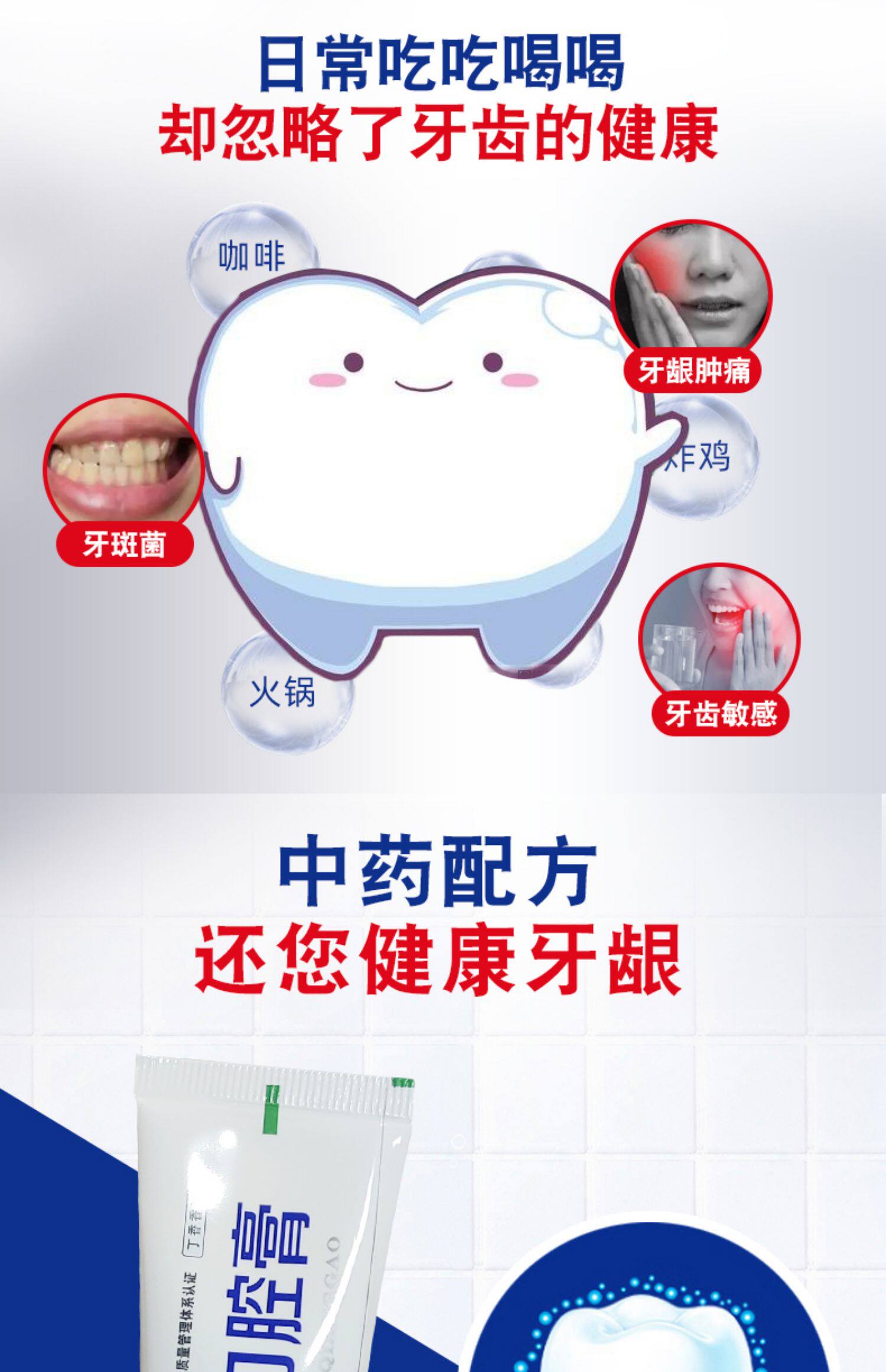 康中医 Пероральные кремы 65GX3, пародонтальный уход уменьшает запах, бляшку, очищает рот и освежает дыхание