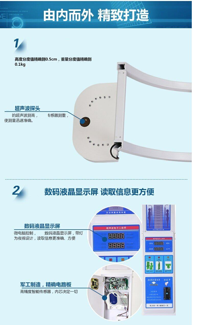 乃力 Ультразвуковая высота веса высоты, монета, печать и печать, вес роста, масштаб тела