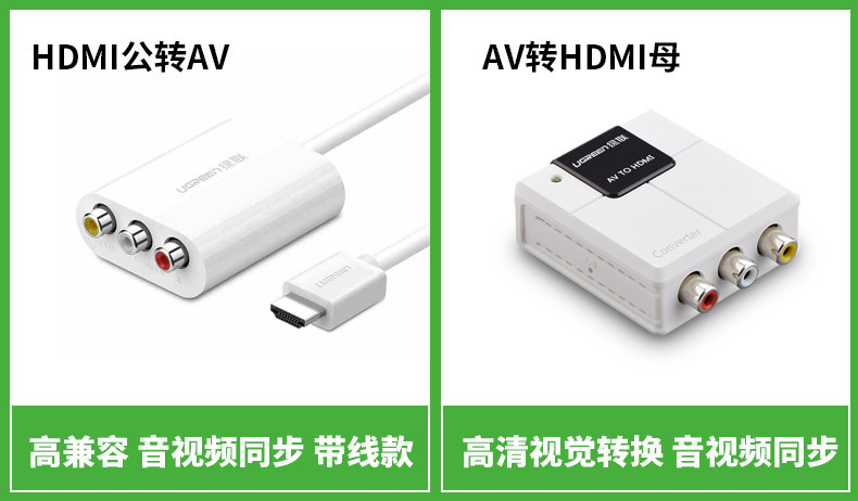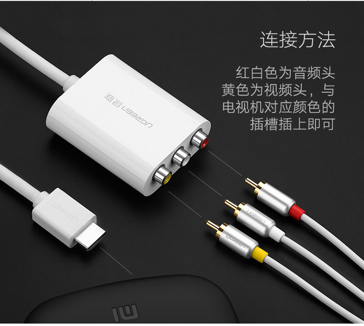绿联 HDMI в AV Converter Computer PS4/3 подходит для коробки Xiaomi Tmall, подключающую старое телевизионное телевидение Трехноколор ротор Telecom Topv Top Box Line Line HD 1080p