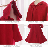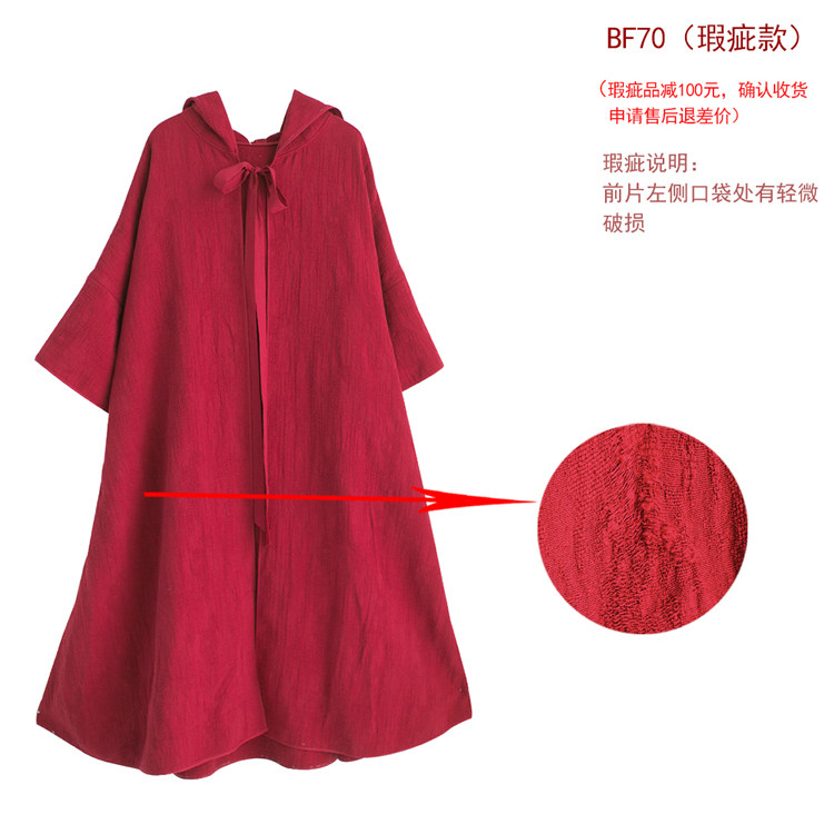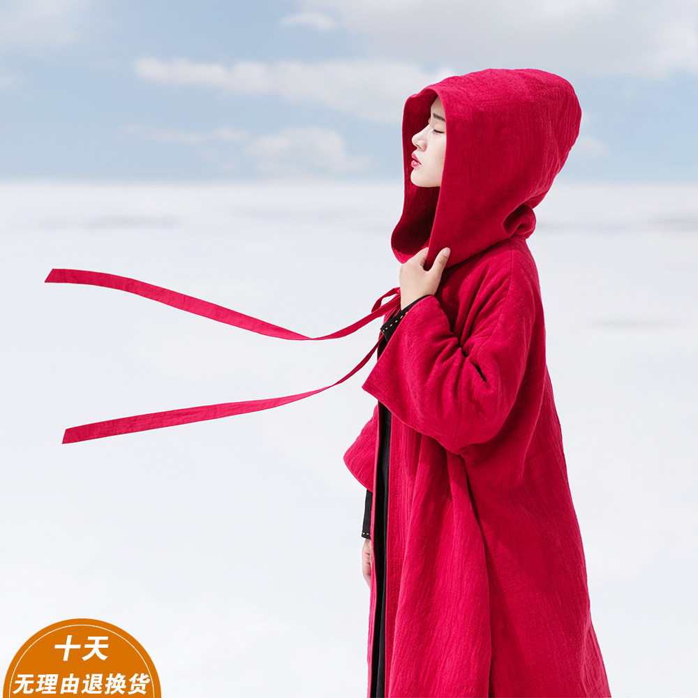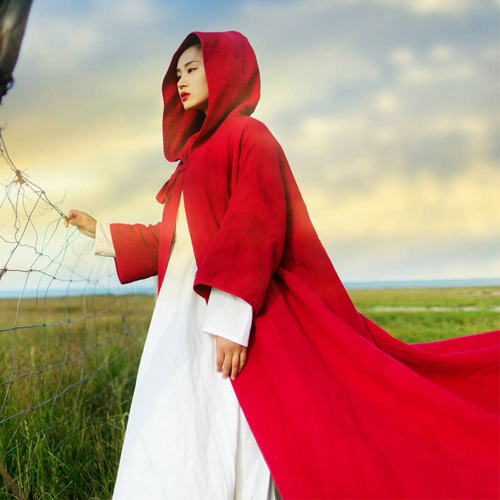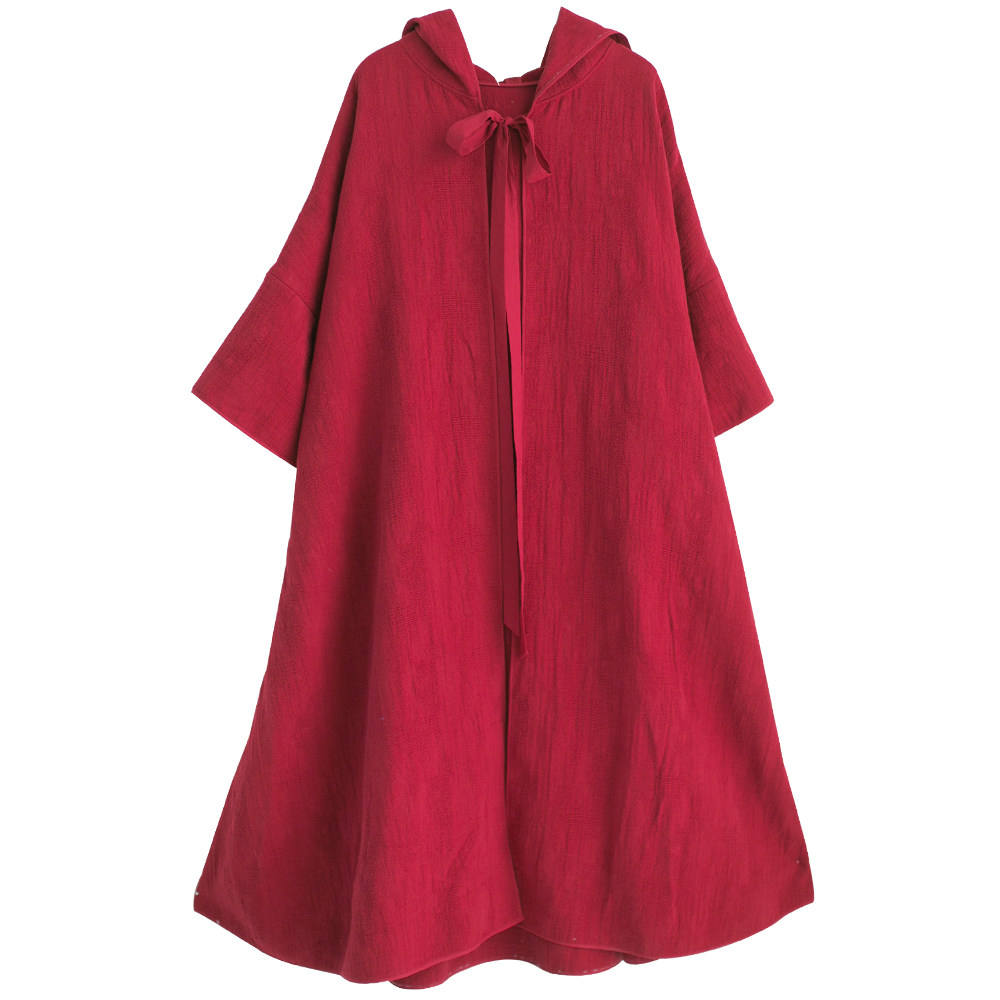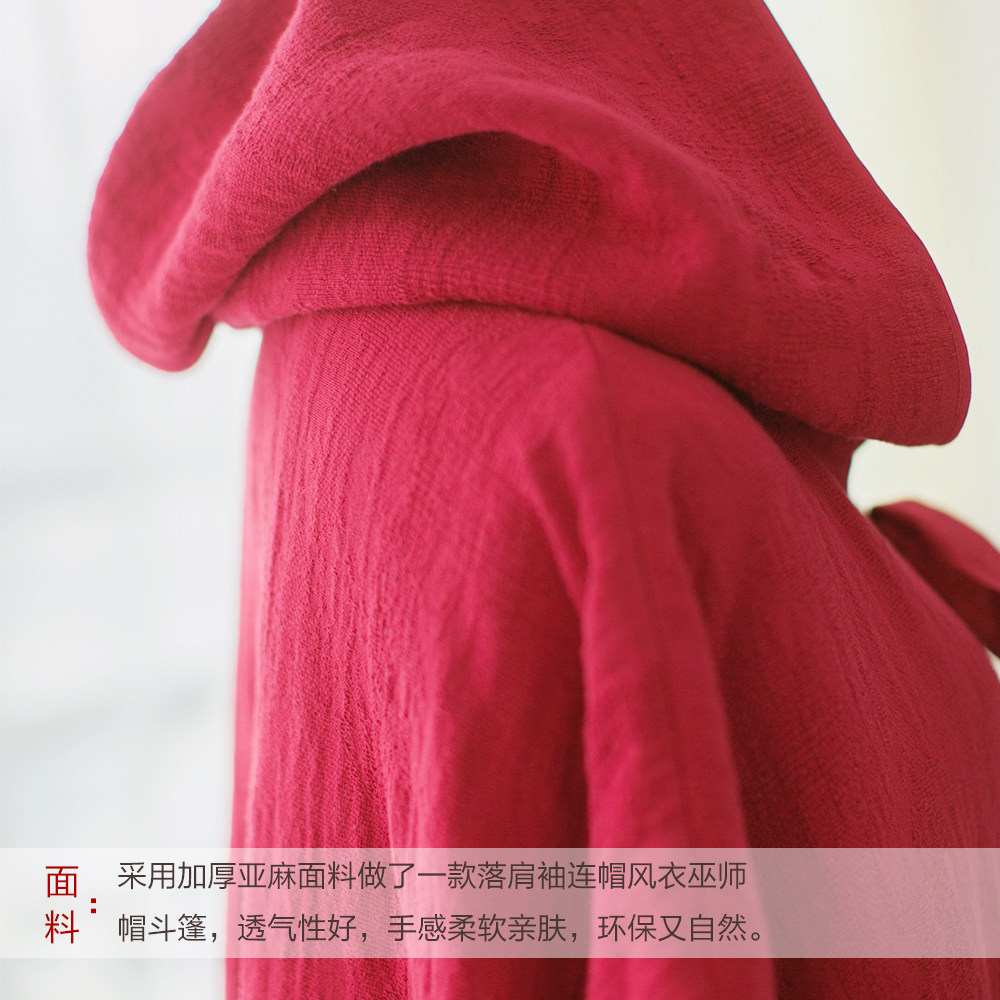 Осенний ретро красный плащ с капюшоном, куртка, из хлопка и льна