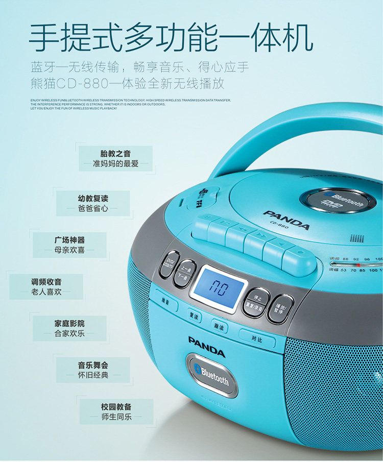 Panda CD-880 Bluetooth DVD-кассетный универсальный проигрыватель CD английский ридер-рекордер CD-плеер