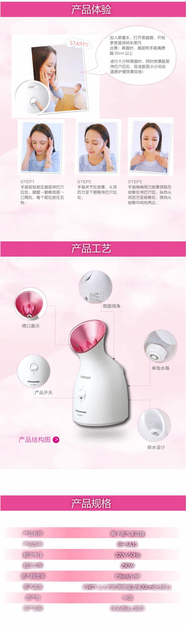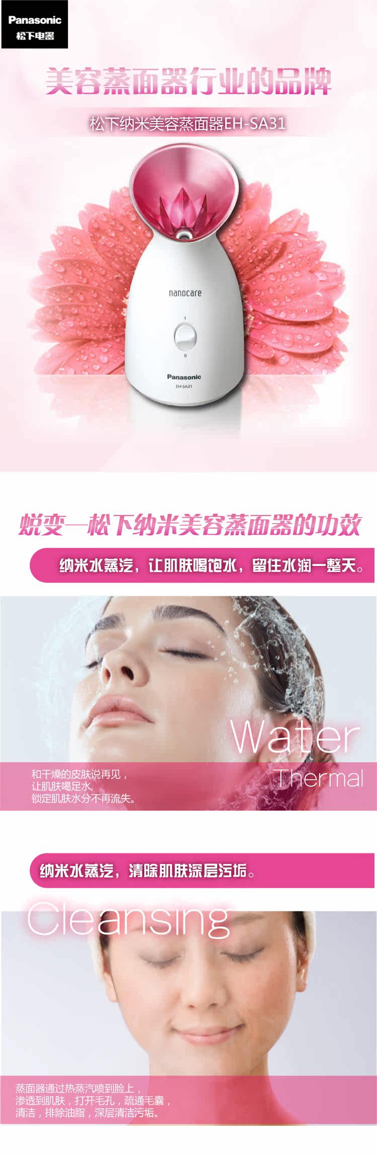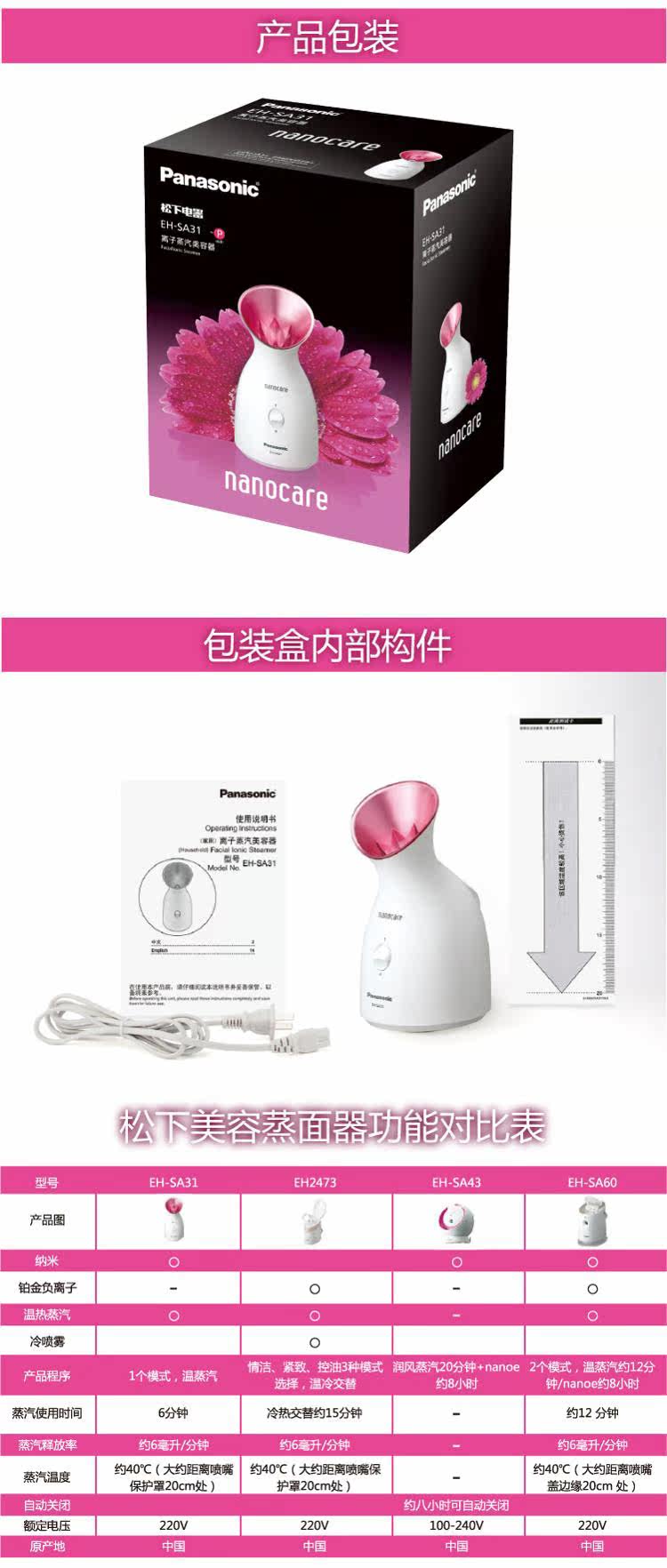 Panasonic Steamer SA31 Nano -Water Ion Steamer Sparay Spray Spray Instrem
