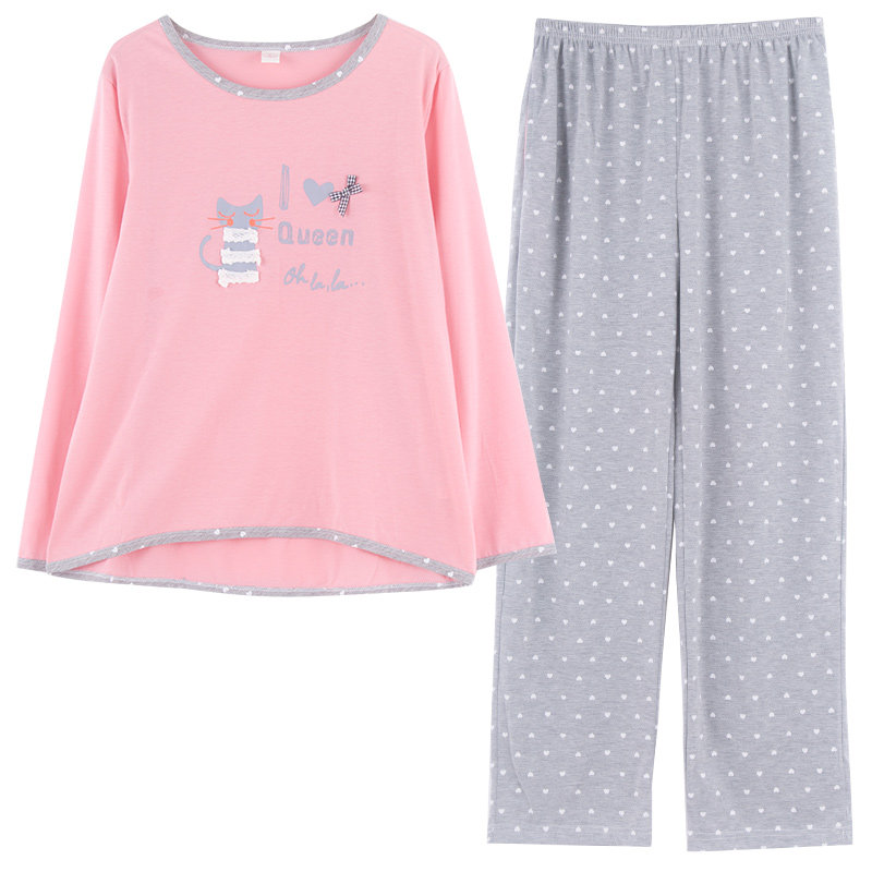 Осенняя пижама, хлопковый лонгслив, хлопковые штаны, комплект, V-образный вырез, большой размер