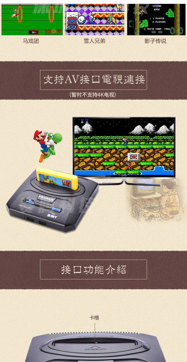 Классический красно-белый автомат Little Overlord, ностальгическая игровая телевизионная консоль, файтинг для двух игроков, вставленная желтая карточка, автомат Nintendo Contra