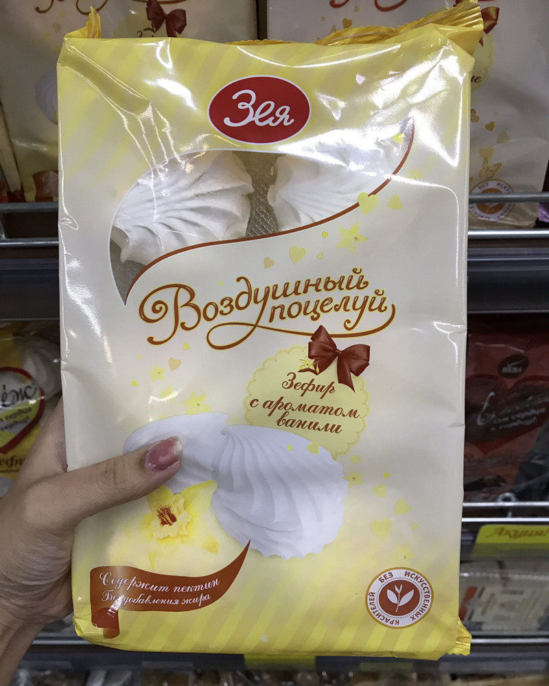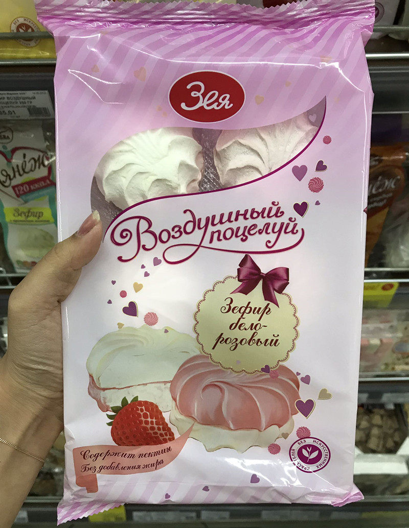 Российский супермаркет приобретает импортированный фальшивый пирог с маршмаллова.