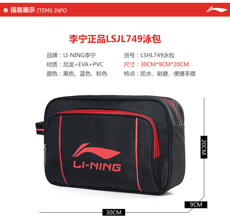 Li Ning, детская водонепроницаемая сумка подходит для мужчин и женщин для плавания, плавательная шапочка, снаряжение, сумка-органайзер