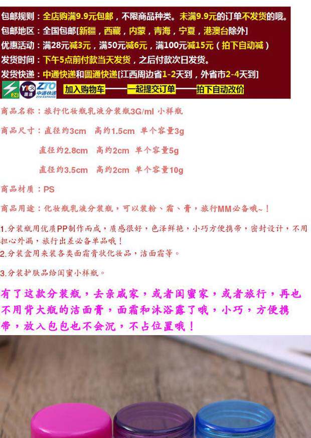 Косметическая бутылка для путешествий для ухода за кожей, крем, тара, пробный комплект, пробник, 20г