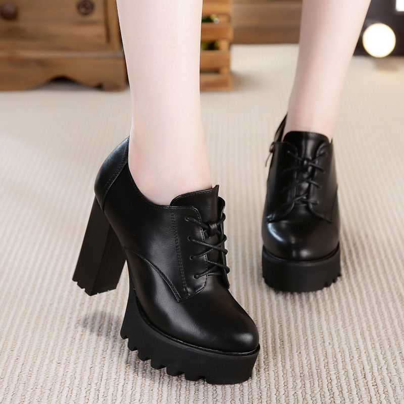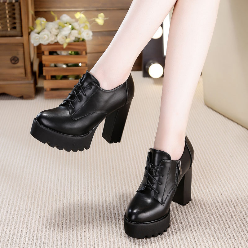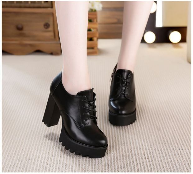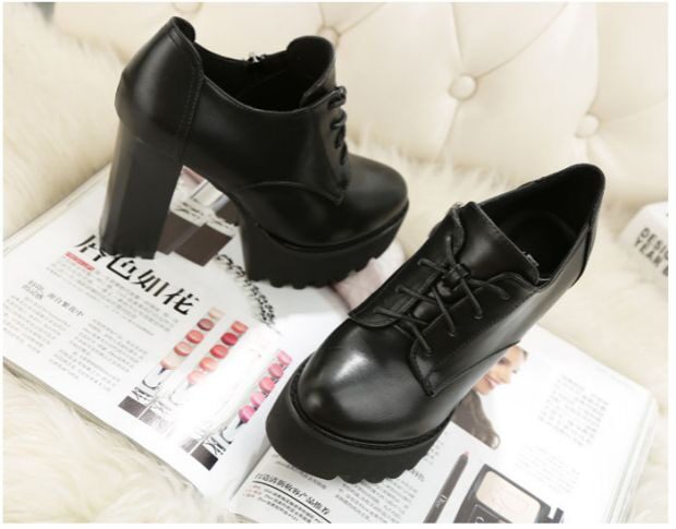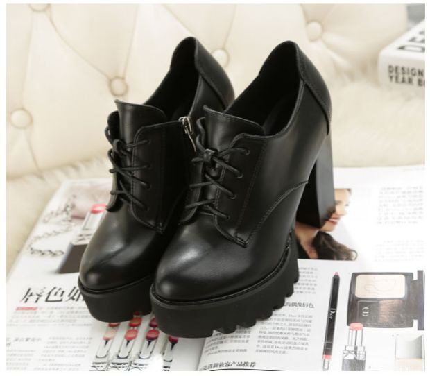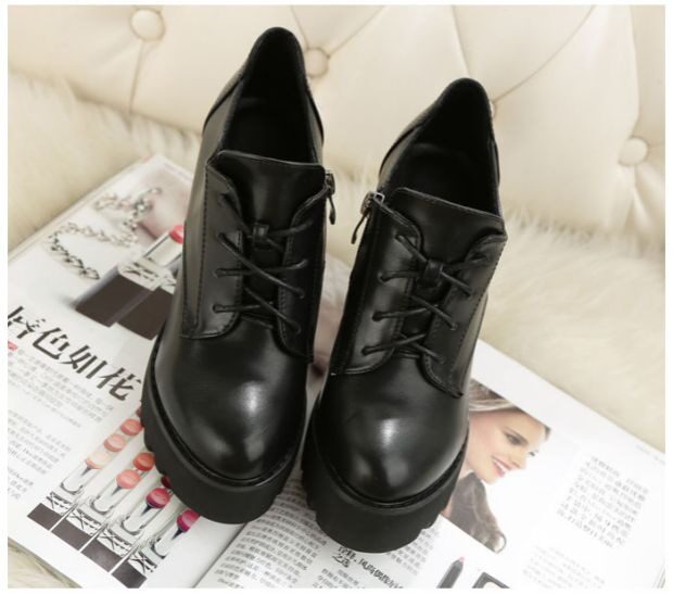 Универсальная флисовая высокая демисезонная обувь в английском стиле на каблуке
