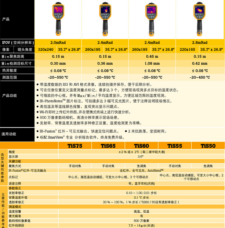 Flux TIS20+MAX Инфракрасный тепловой воображение TIS55+TIS60+TIS75+PTI120/TI400U