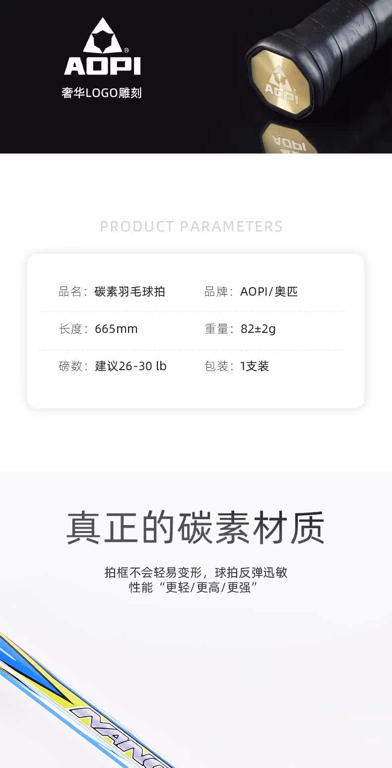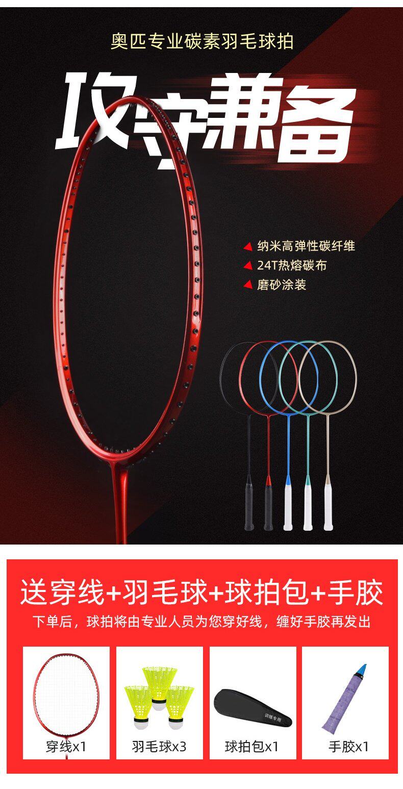 奥匹 Прочная ракетка для бадминтона для взрослых из углеродного волокна