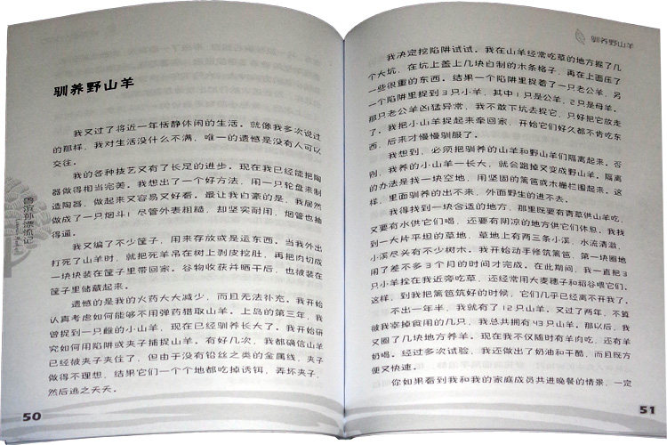 «Робинзон Крузо» рассказывает яркую историю Робинзона, который родился в семье бизнесмена и отважился отправиться в плавание. Его выбросило волнами на необитаемый остров, где он провел 28 лет одиночества.Он преодолел свой пессимизм, построил жилище, изготовил утварь, приручил диких животных, возделывал землю и использовал различные методы для добывания пищи.Он наконец победил природу и улучшил среду обитания.На семнадцатом году он спас туземца, назвал его Пятницей и обучил тому, чтобы он стал его верным рабом.Позже Робинзон обрел новых жителей и стал правителем острова.Но Робинзон не отказался от мысли вернуться в свою страну и вернулся на родину на британском торговом корабле.