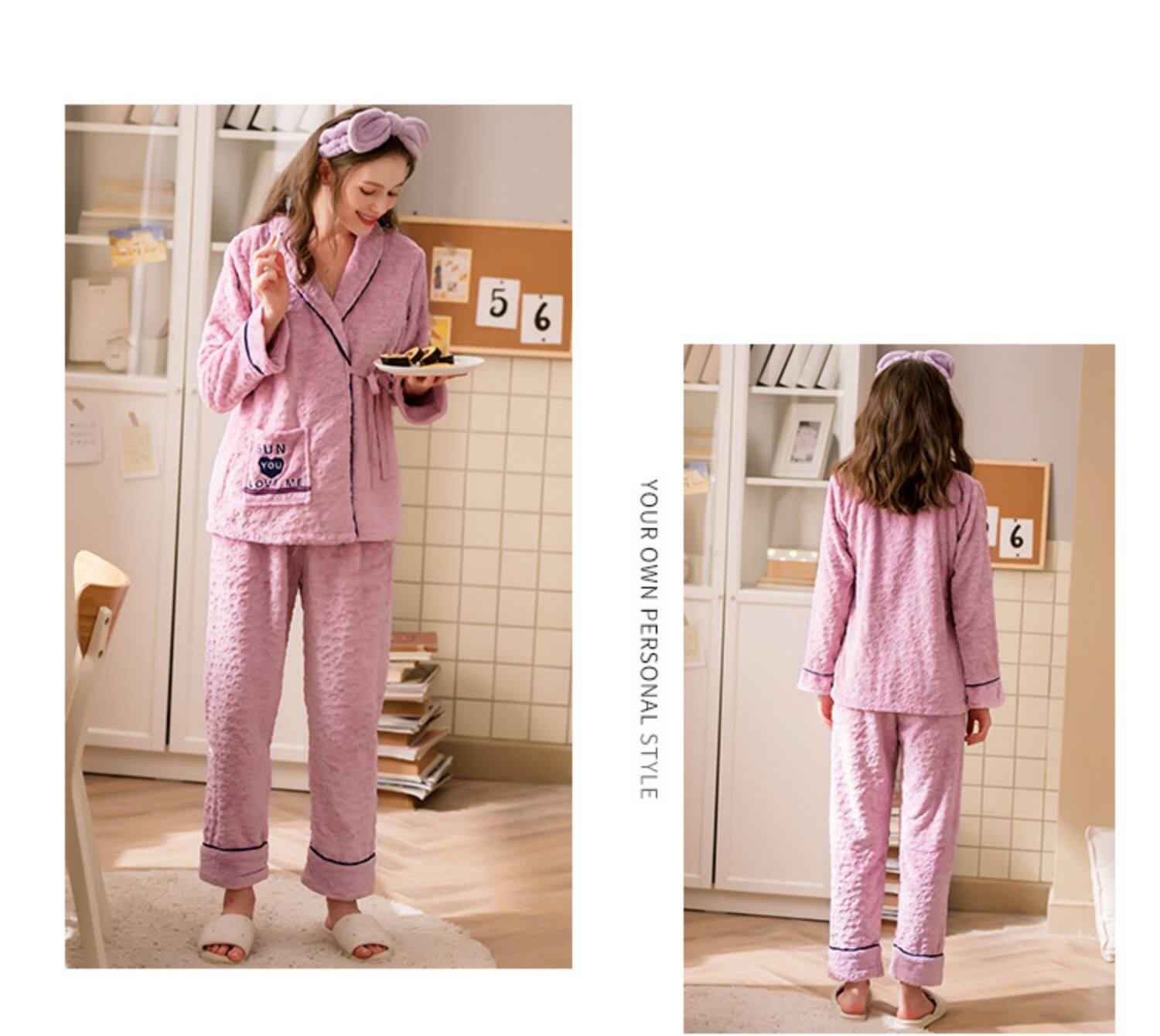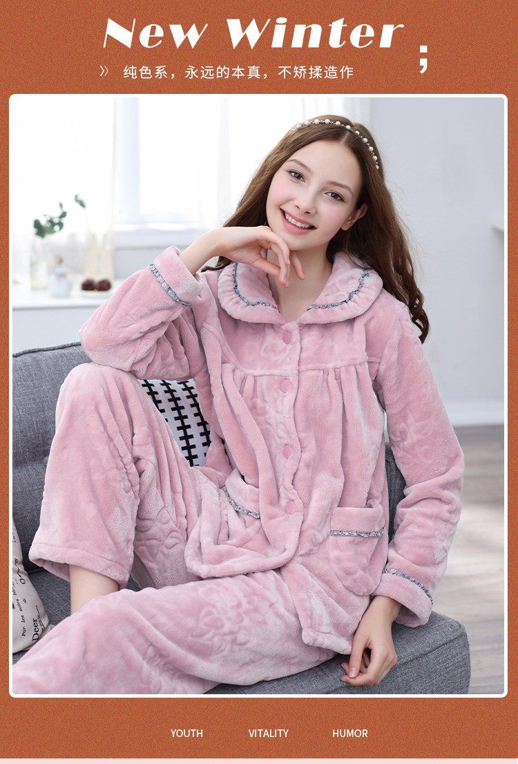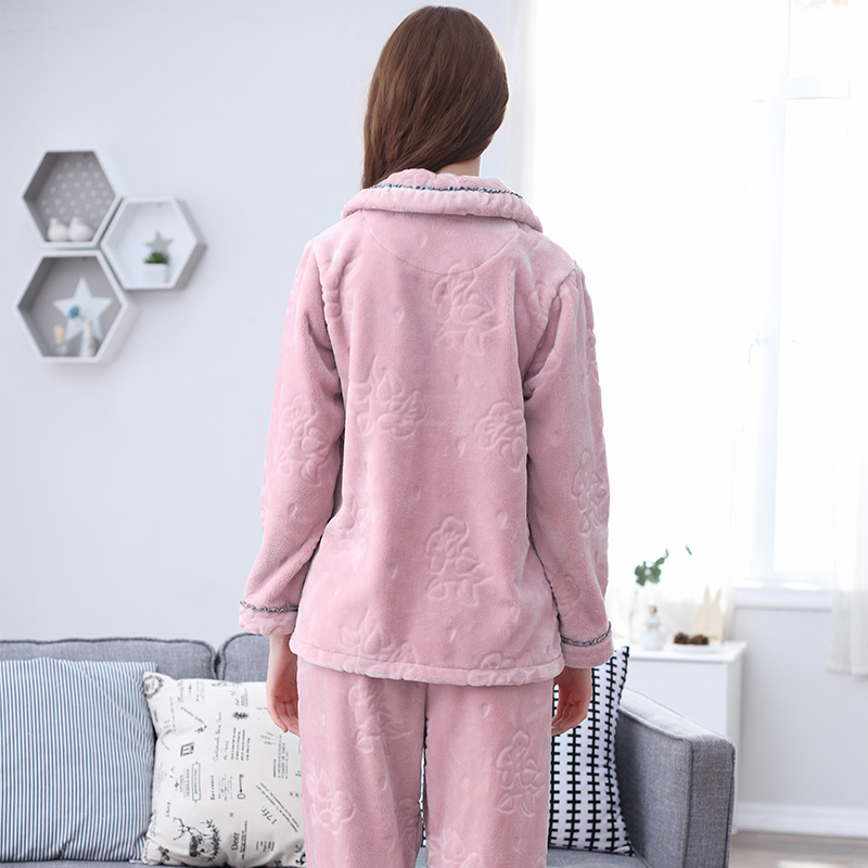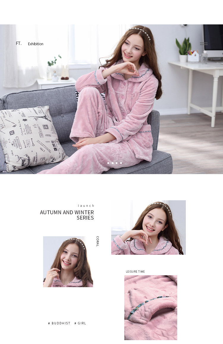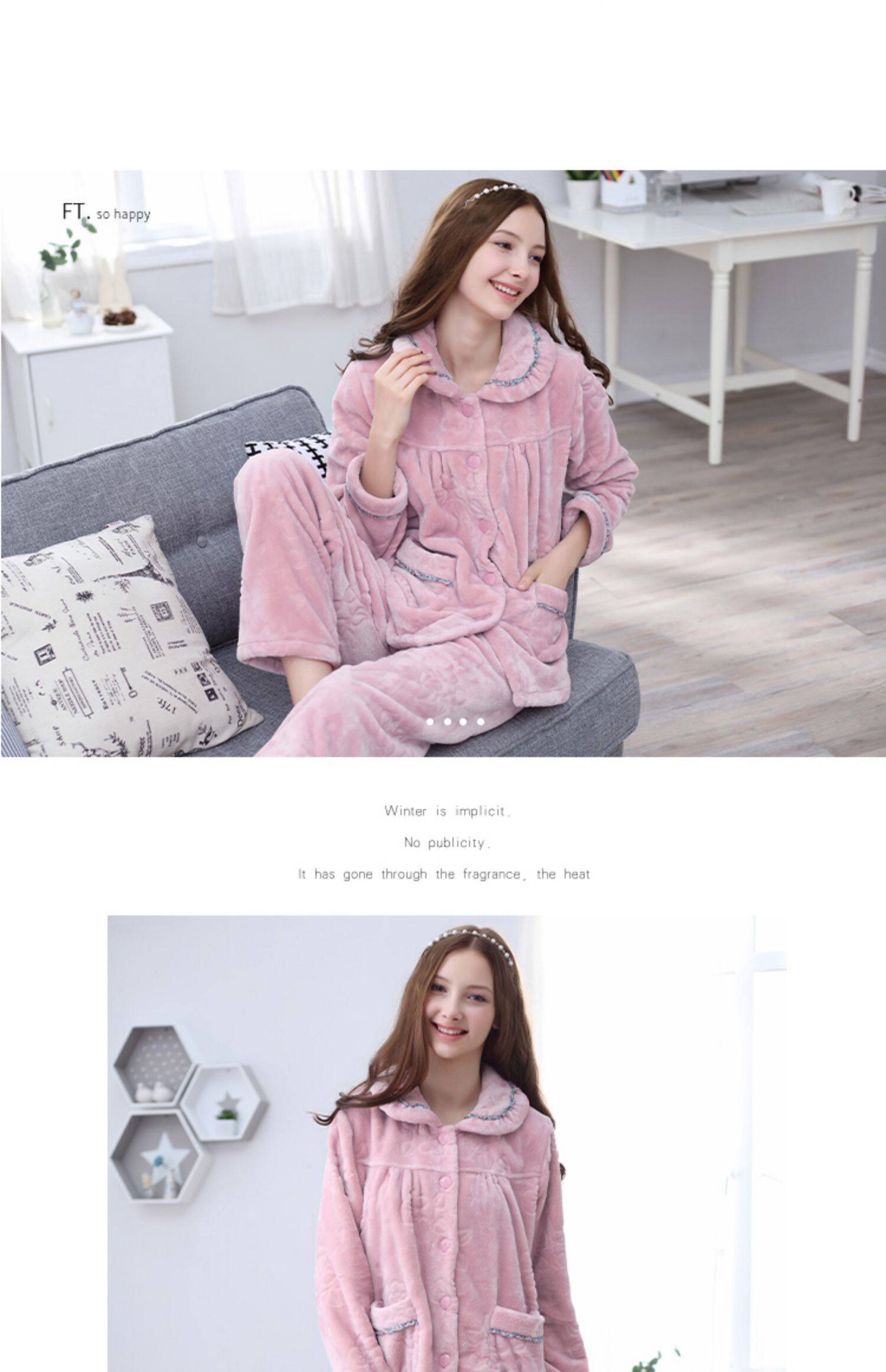 芬腾 Коралловая бархатная демисезонная пижама, утепленный лонгслив, фланелевый комплект, большой размер