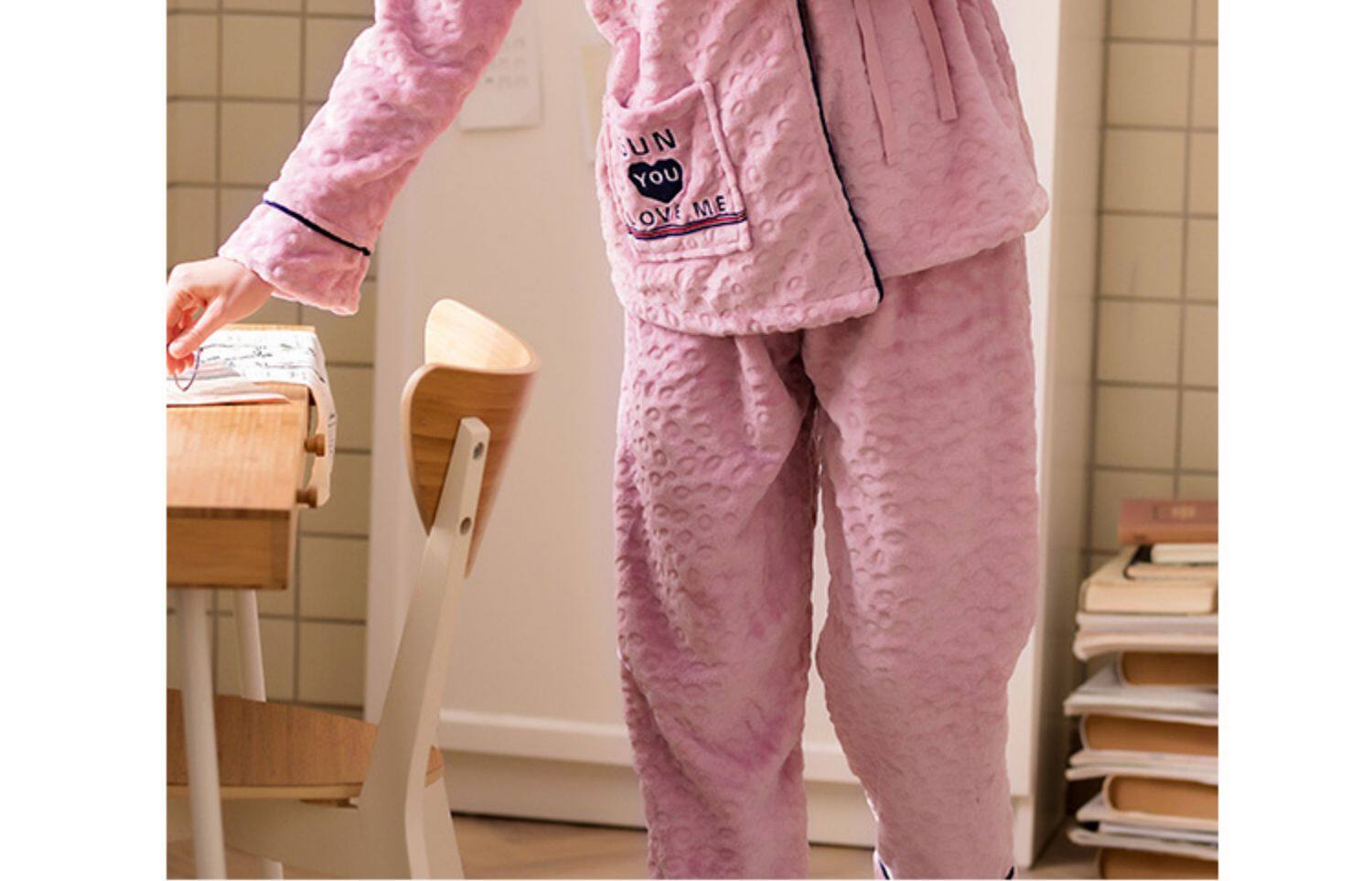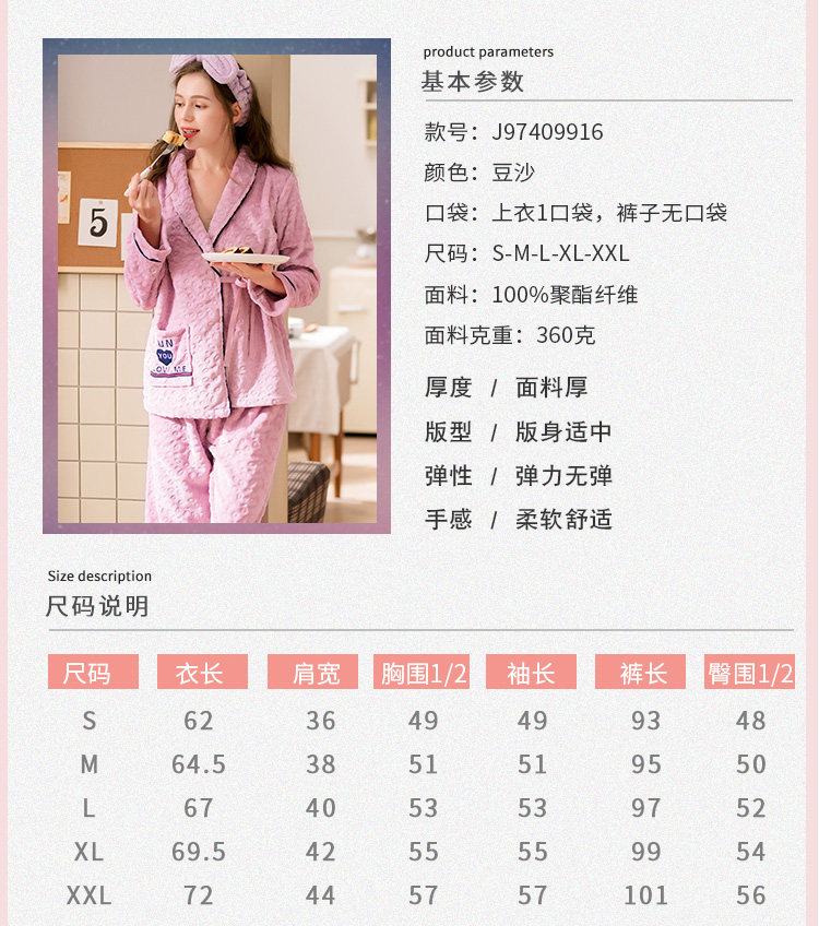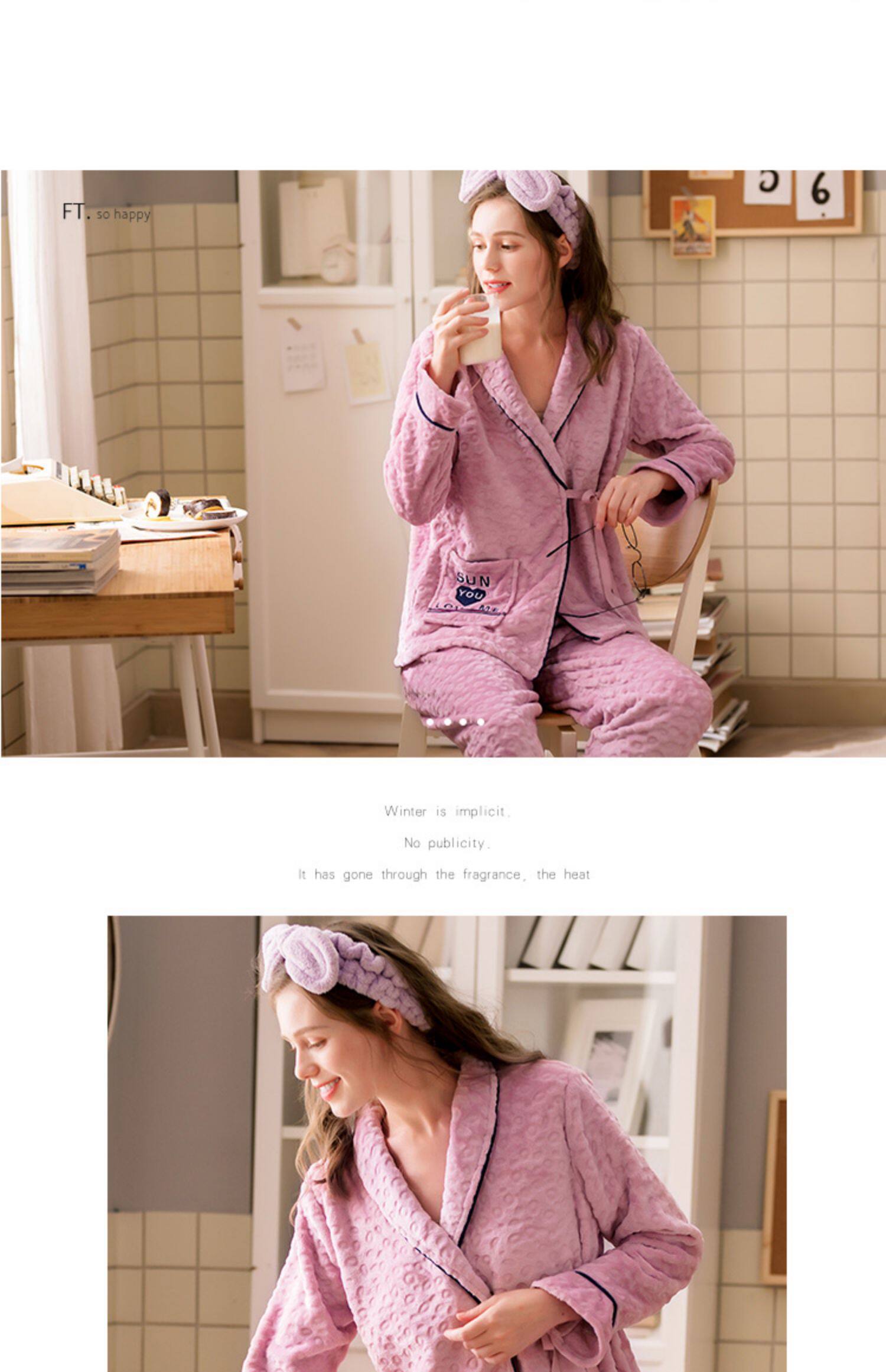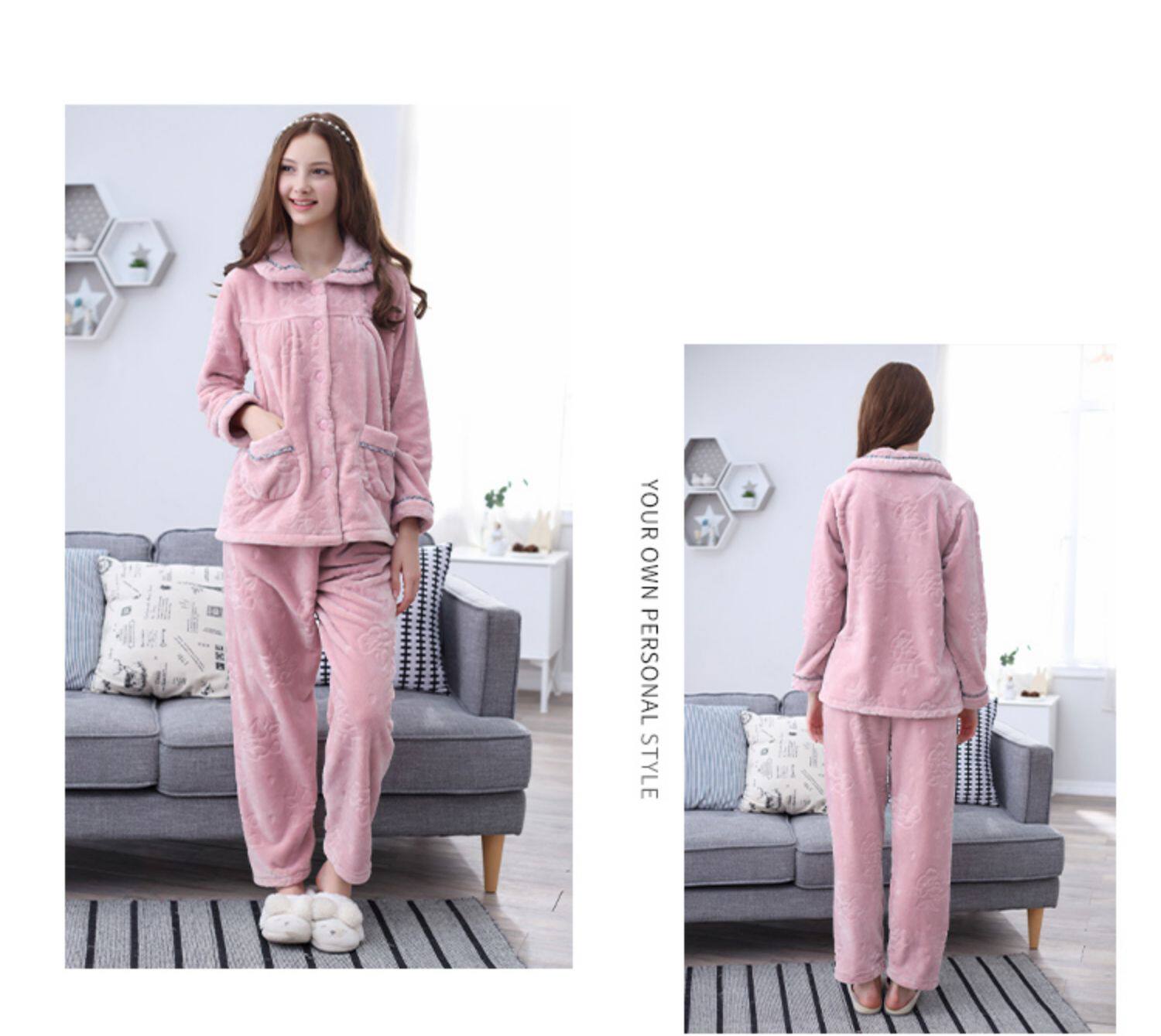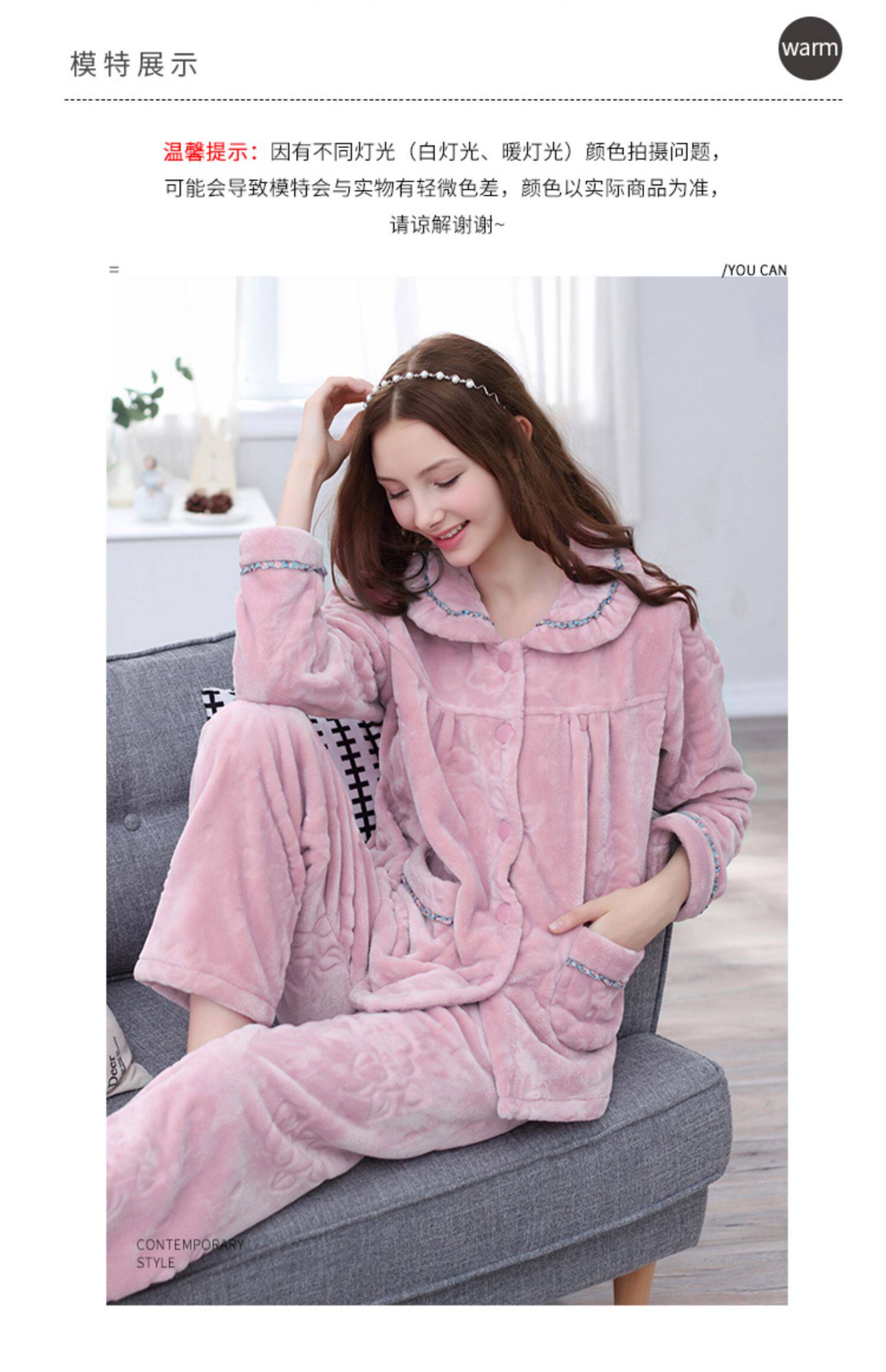 芬腾 Коралловая бархатная демисезонная пижама, утепленный лонгслив, фланелевый комплект, большой размер