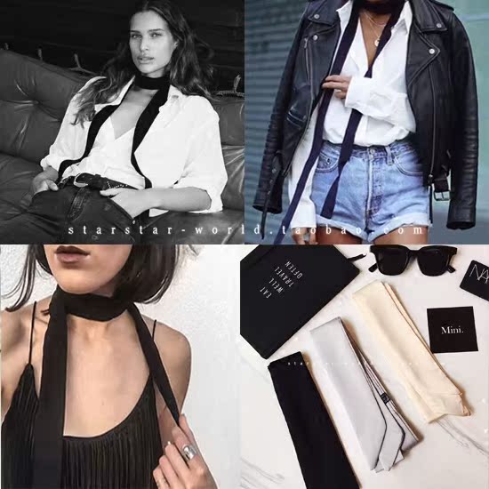 Бесплатная доставка корейский шифоновый атласный узкий шелковый шарф ультра -много двойного шарфа шарфа, длинная черно -белая стрельба Дикой улицы