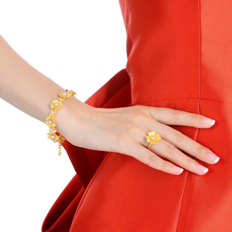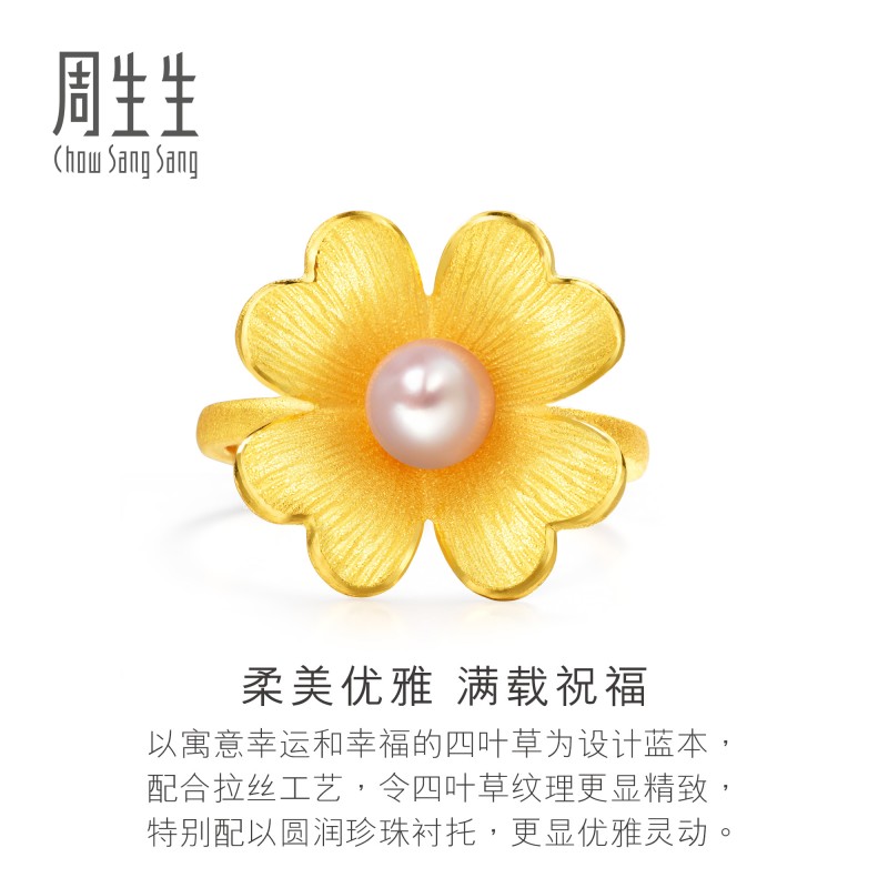 周生生 Золотое кольцо из жемчуга, четырехлистный клевер