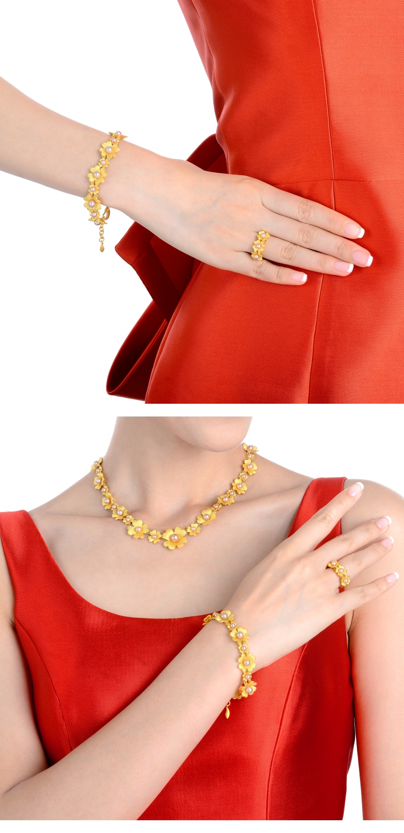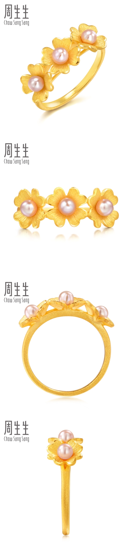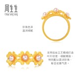 周生生 Золотое кольцо из жемчуга, четырехлистный клевер