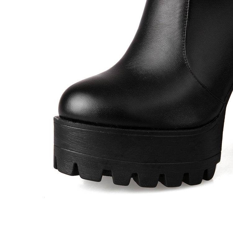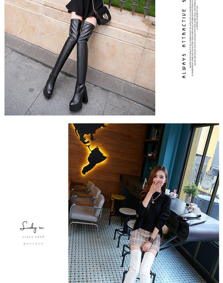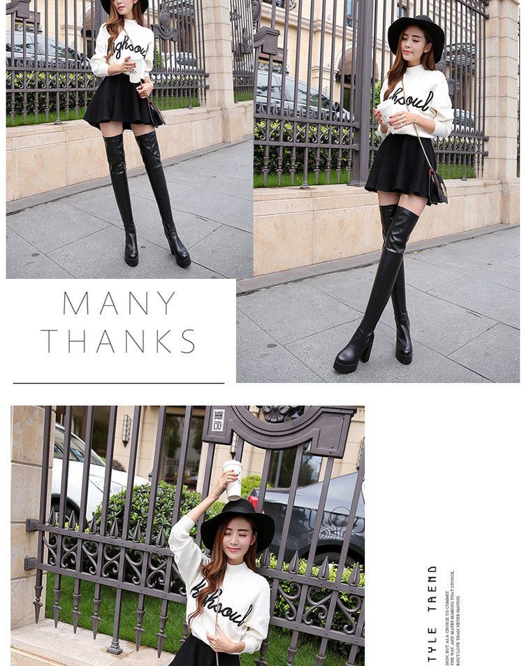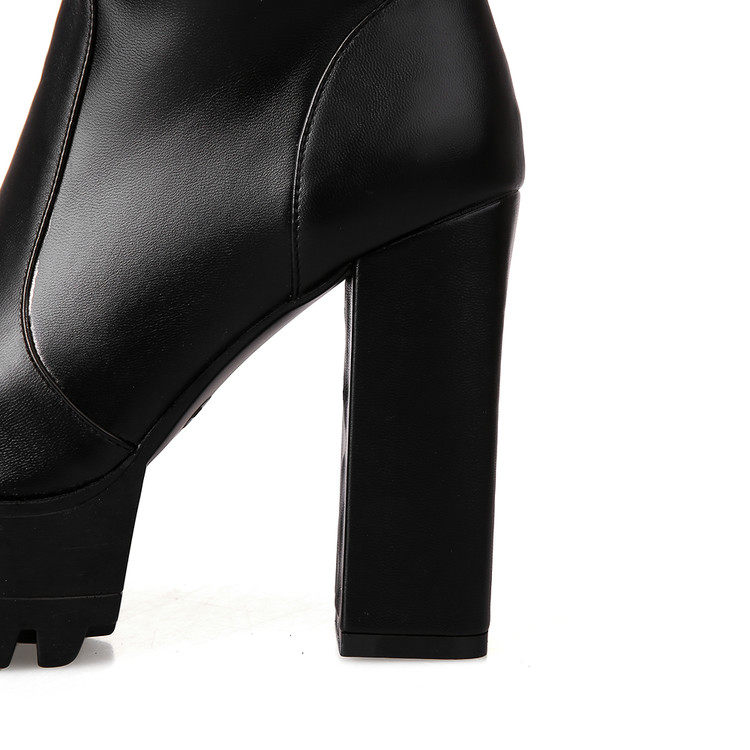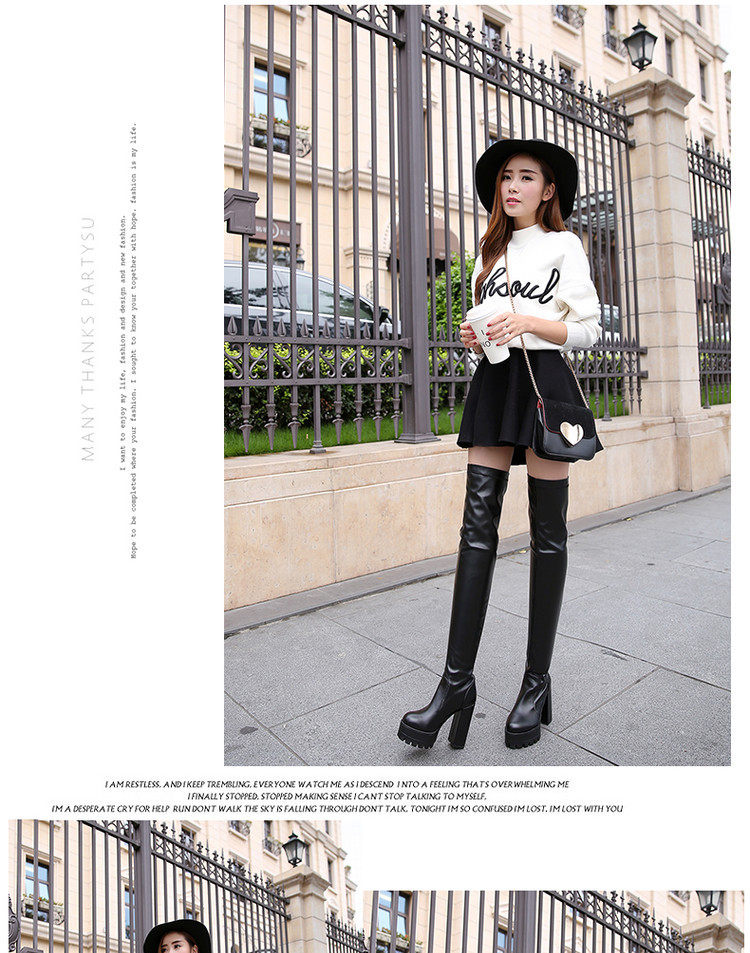Осенне-зимние женские сапоги на высоком каблуке, большие размеры 40-41-42, эластичные сапоги на толстом каблуке, сапоги выше колена, рыцарские сапоги на платформе