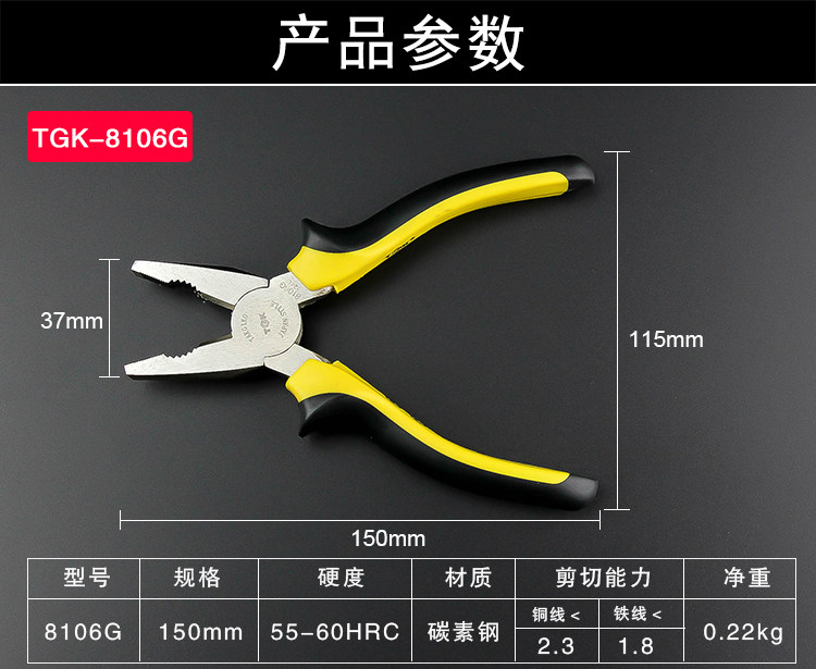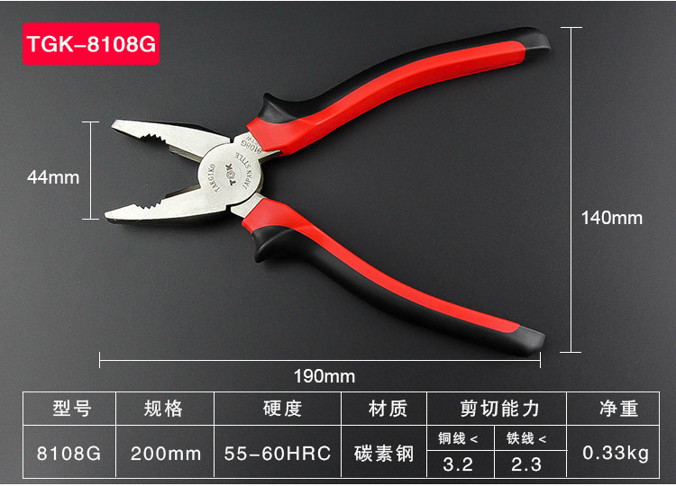 TGK Стальная проволка, плоскогубцы, нескользящая ручка, тигр, 6 дюймовая, 8 дюймов