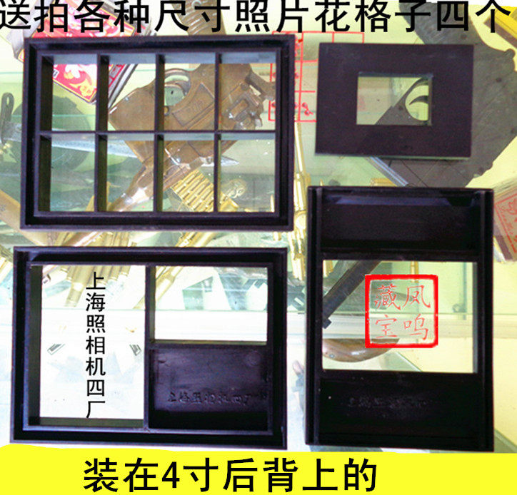 Набор из 4 решетчатых рамок для фотографирования различных размеров!Установлен на четырехдюймовой назад!Редко изготовленным Шанхайской камерой Factory № 4, весь пластик не поврежден и не имеет урона, очень новое и не стареющее!