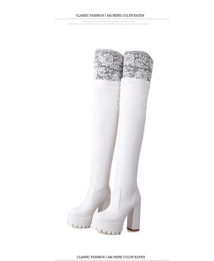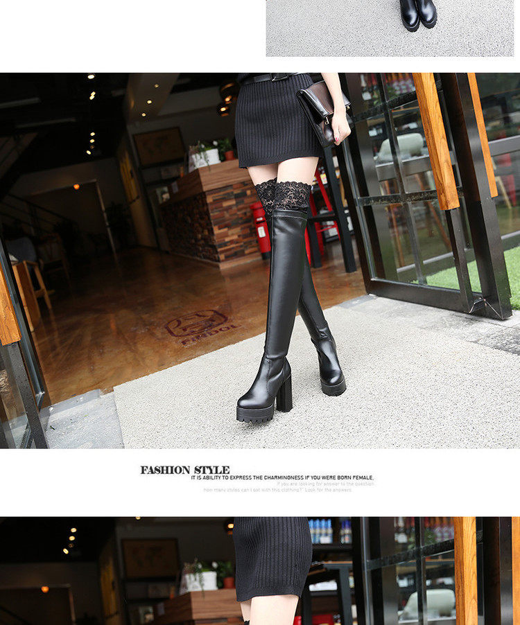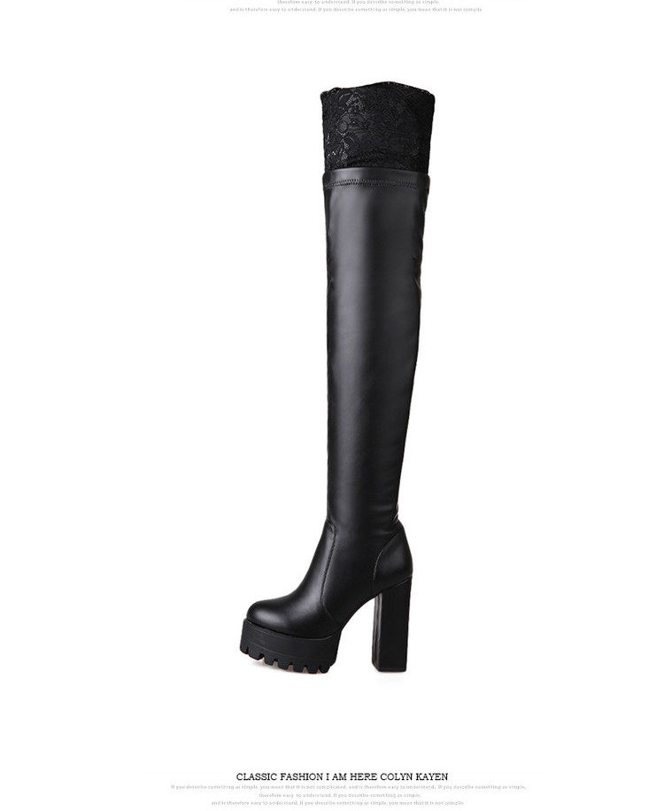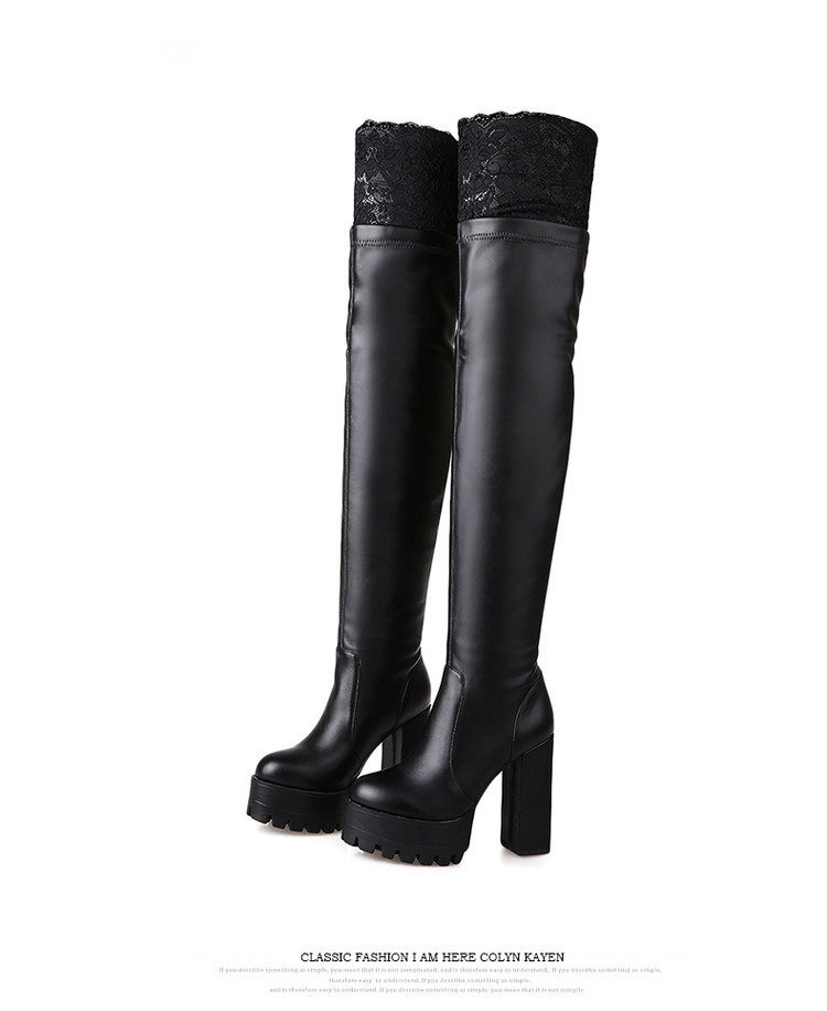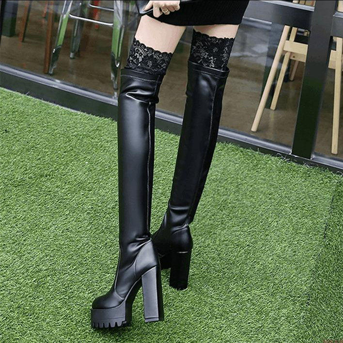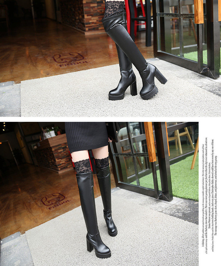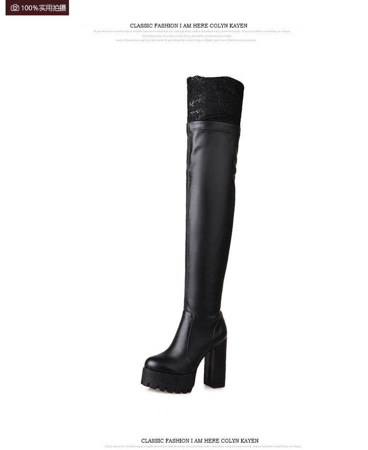 Осенне-зимние кружевные женские сапоги на толстом каблуке и толстой подошве, длинные сапоги выше колена на высоком каблуке большого размера, узкие эластичные сапоги, рыцарские сапоги на платформе