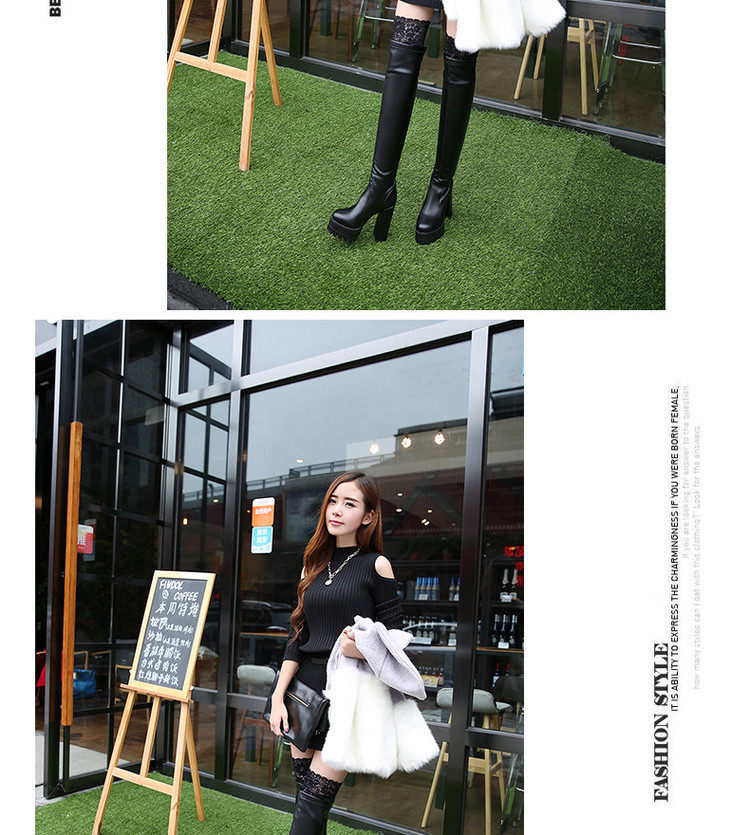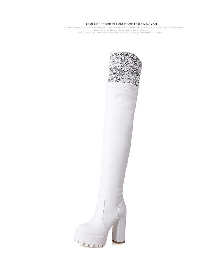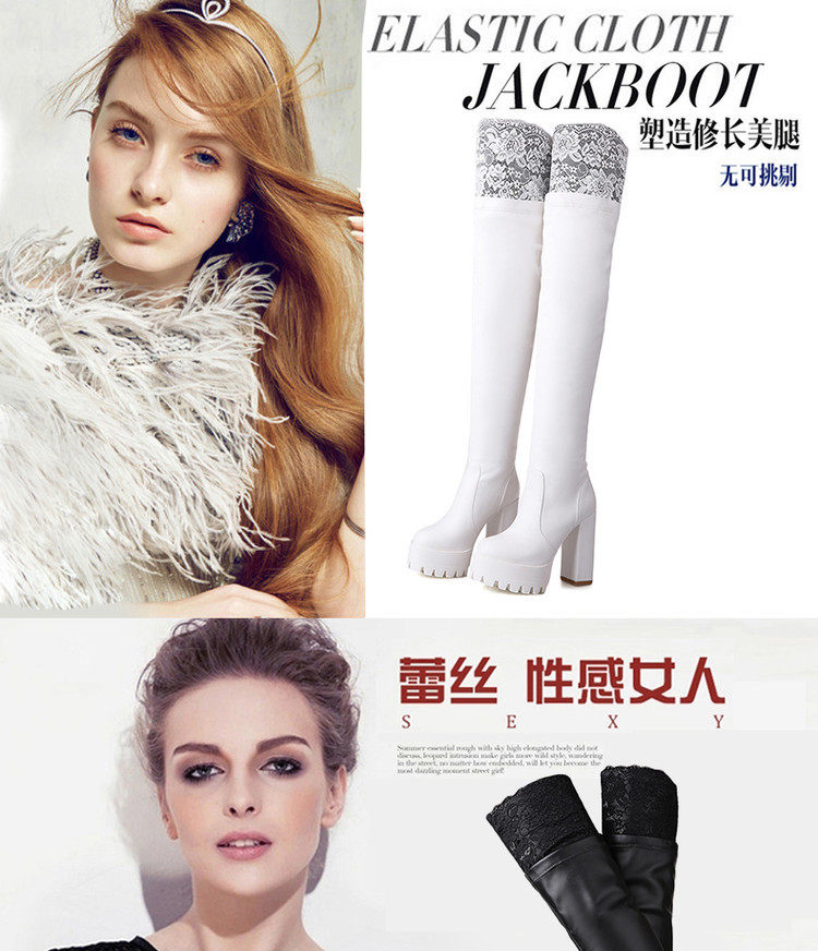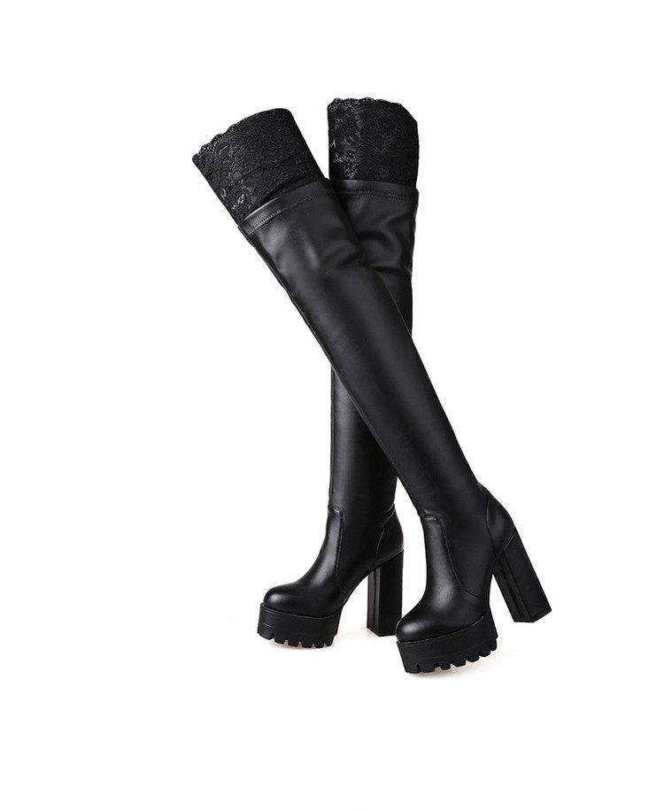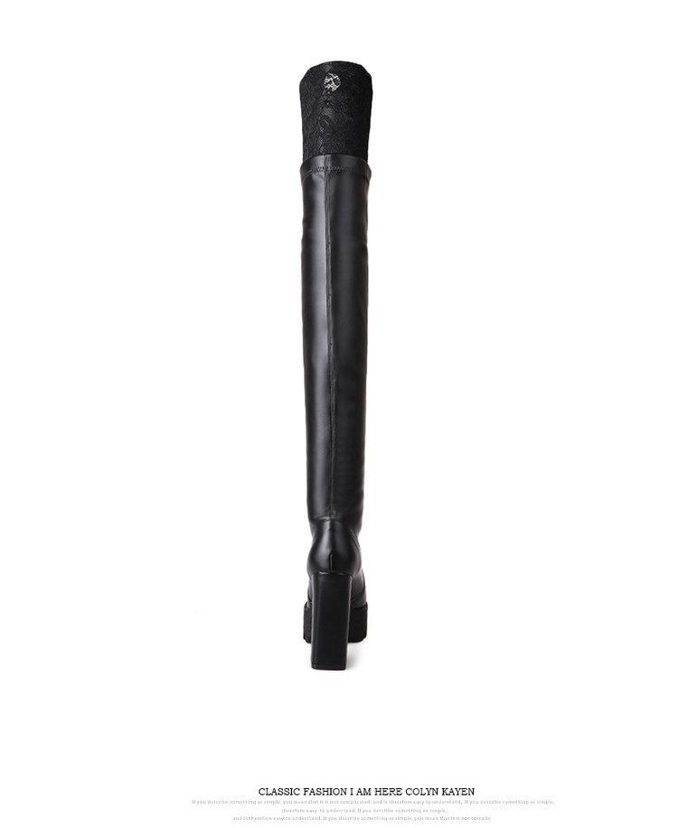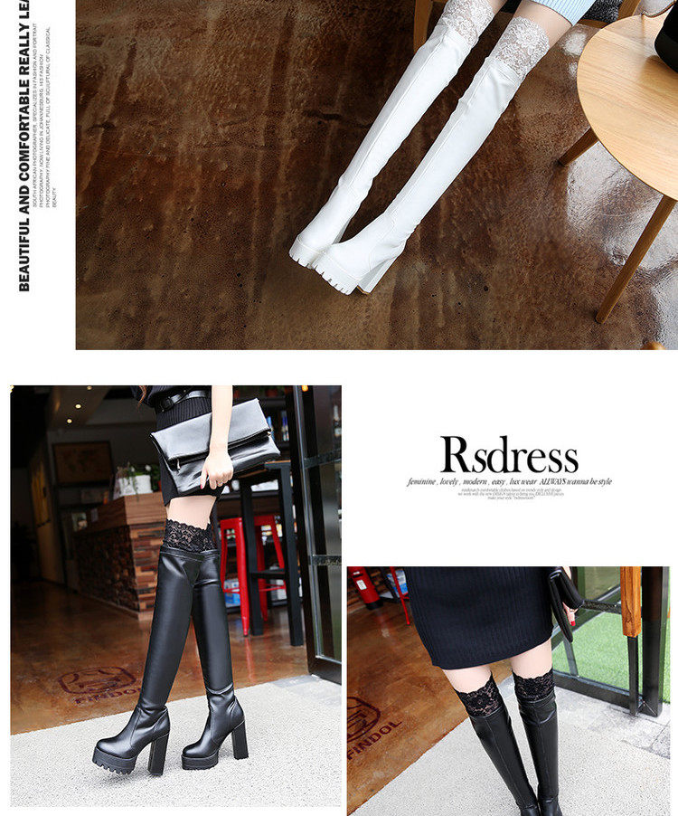 Осенне-зимние кружевные женские сапоги на толстом каблуке и толстой подошве, длинные сапоги выше колена на высоком каблуке большого размера, узкие эластичные сапоги, рыцарские сапоги на платформе