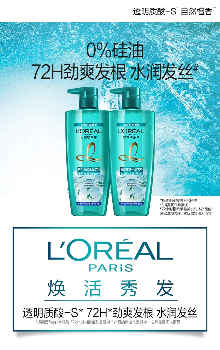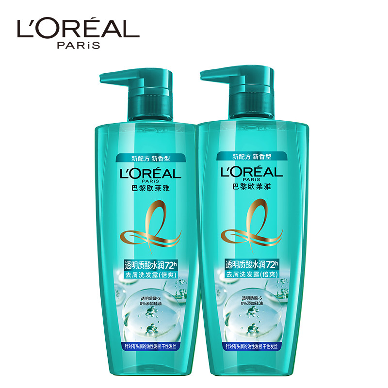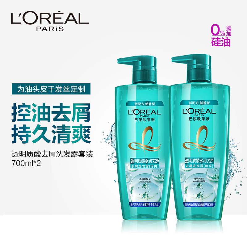 L'Oreal, прозрачный увлажняющий освежающий шампунь с гиалуроновой кислотой, комплект, 700 мл