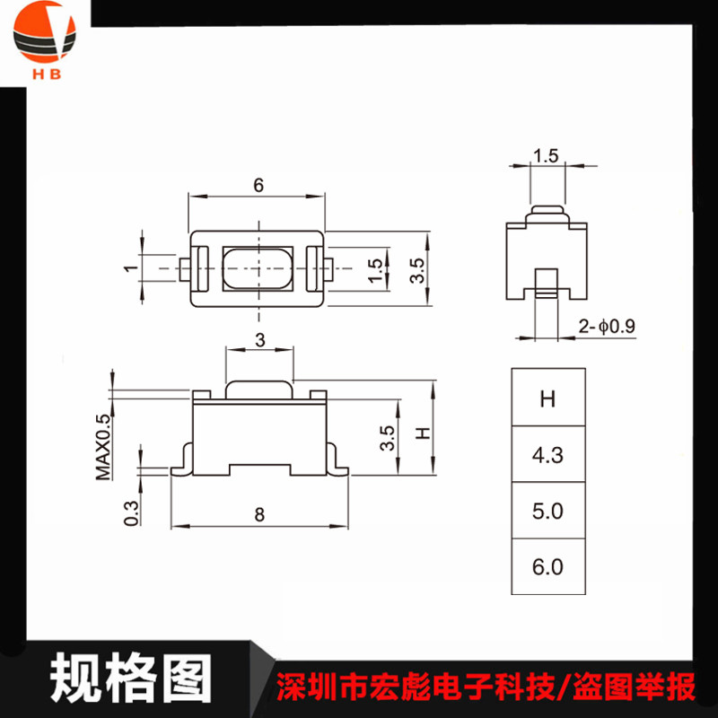 Переключатель, 4.3mm, 3x, 6x, 3 штук