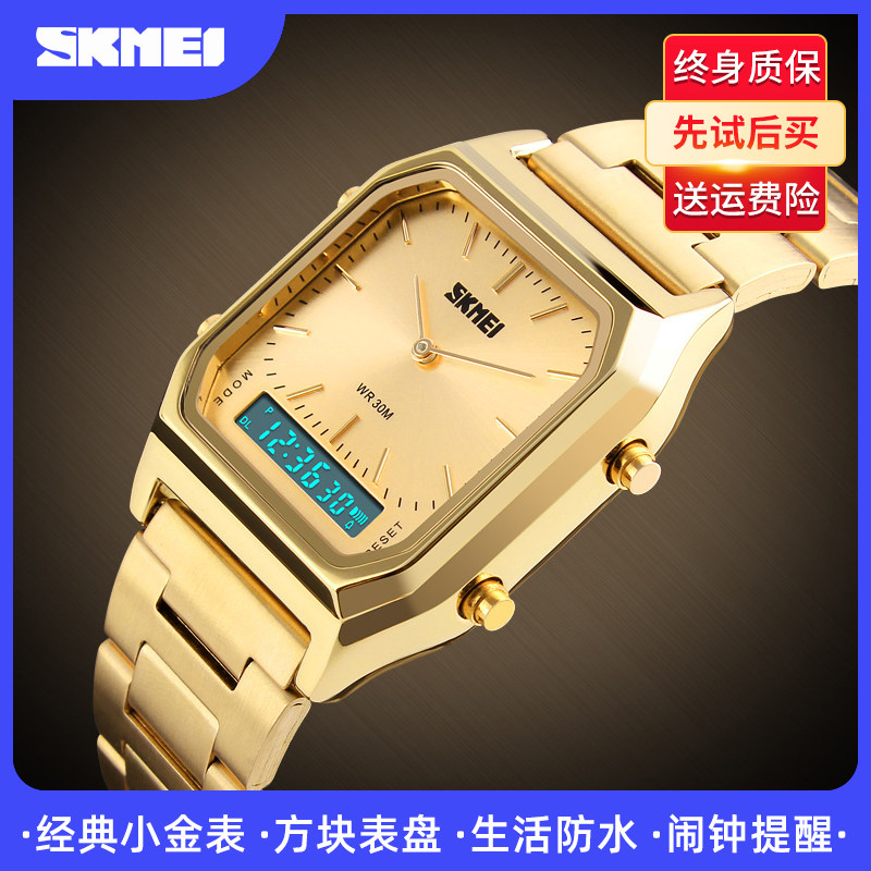 TikTok, ретро мужские часы, золотые часы, водонепроницаемый универсальный стальной ремешок, цифровые часы