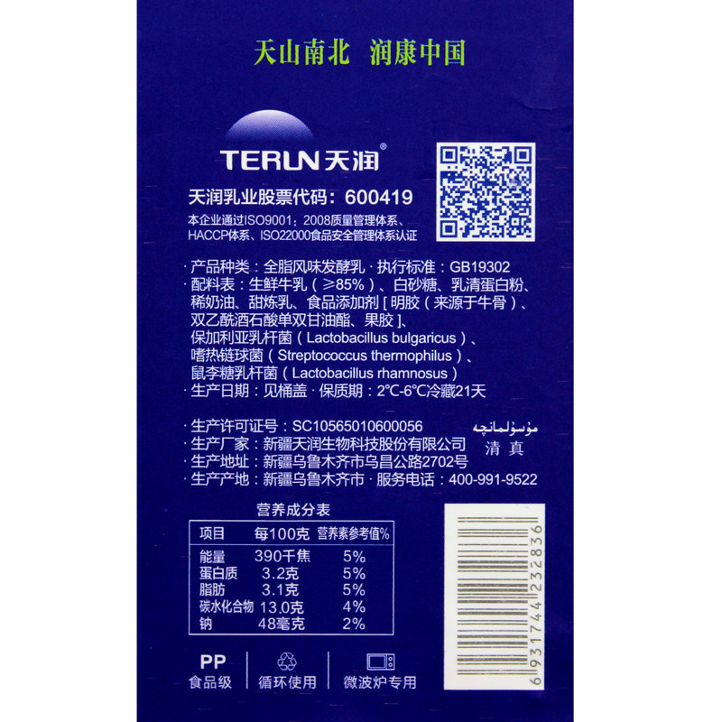 [SF бесплатная доставка] Xinjiang Tianrun Milk Runkang Оригинальный старый йогурт 1 кгх2 квадратный йогурт йогурт