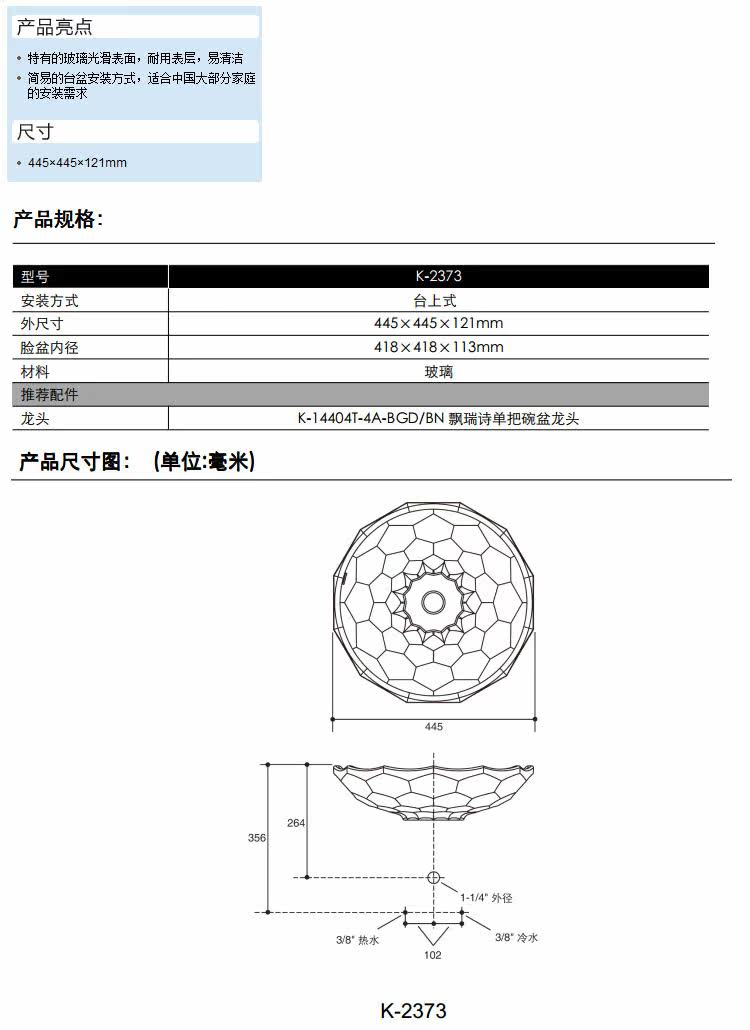 Kohler Washing Basin Beatt Glass Art Station K-2373-B11