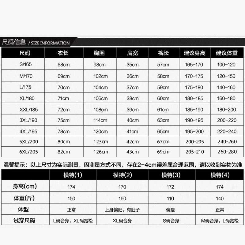 - XXXXL/195 XXXL/190 XXL/185 XL/180