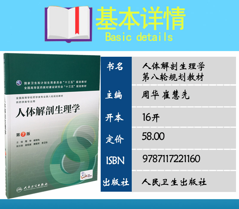 Подлинное пятно физиологии анатомии человека, 7 -е издание седьмое издание Чжоу Хуа Хуи Хуйксян 13 -й пять -летний фармацевтический профессиональный профессиональный восьмой раунд учебника по планированию