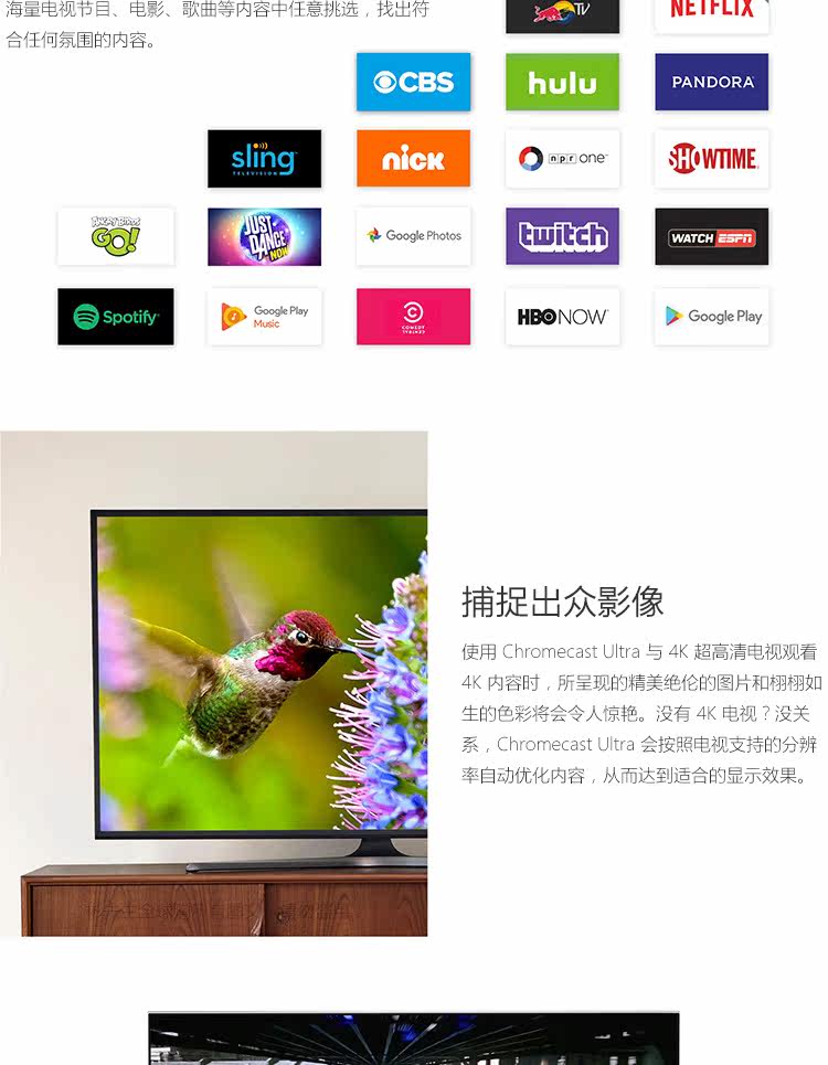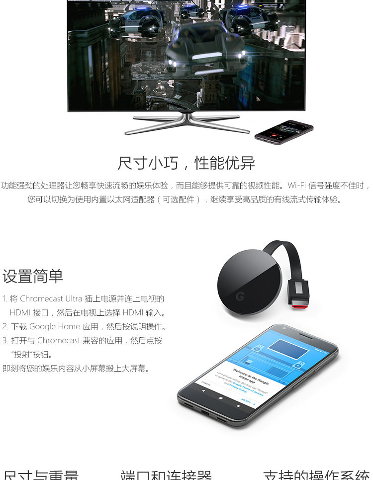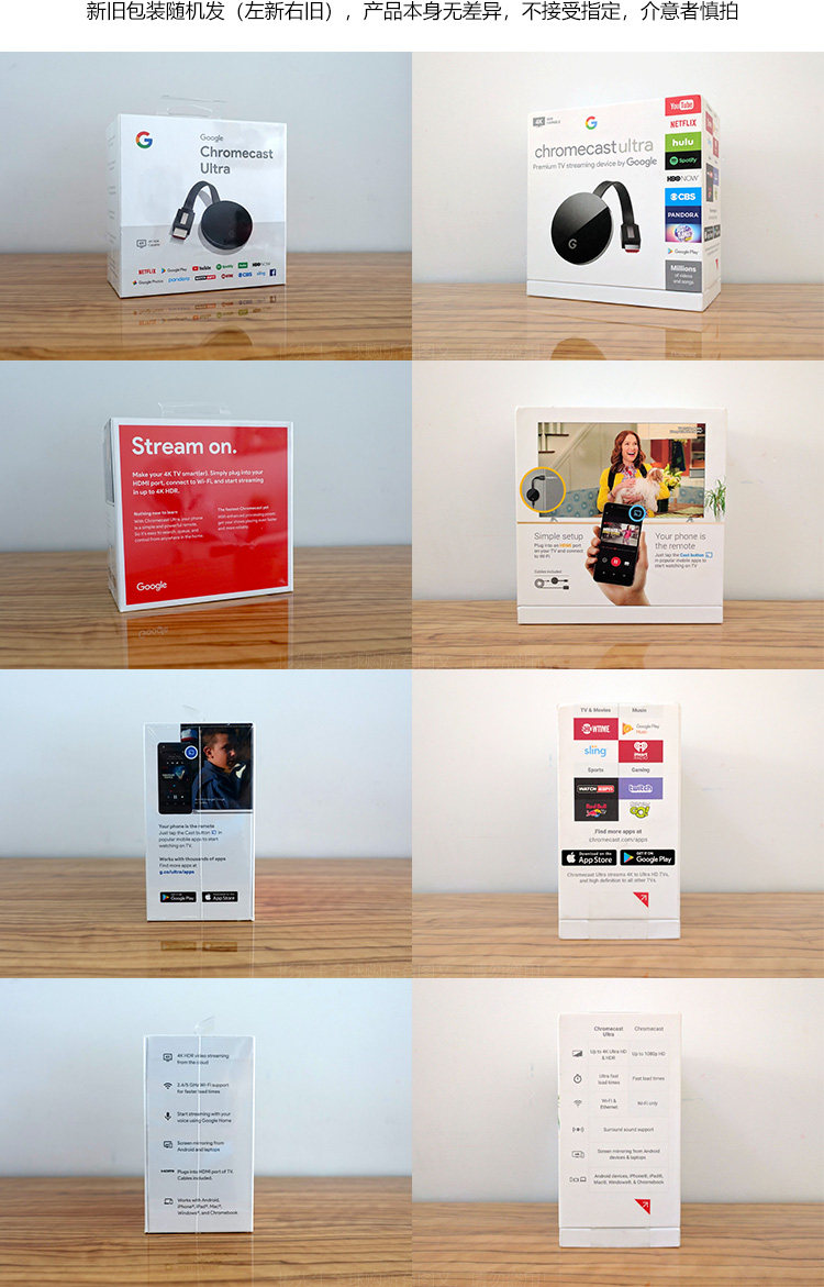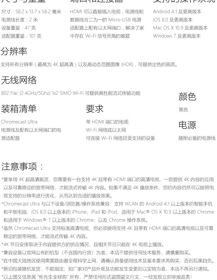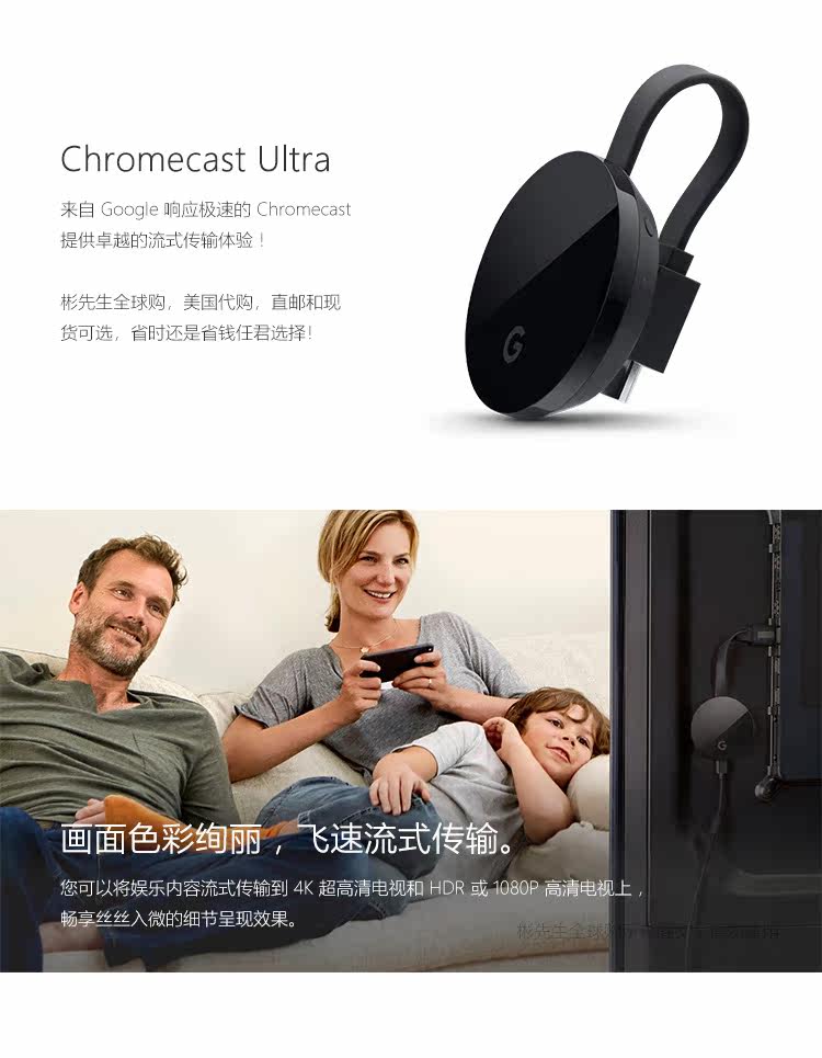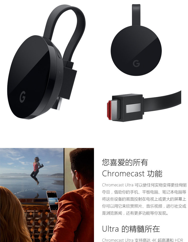 Google Chromecast Ultra Google 4K Wireless High -Definition Video Proctor HDMI Экран броска на том же экране