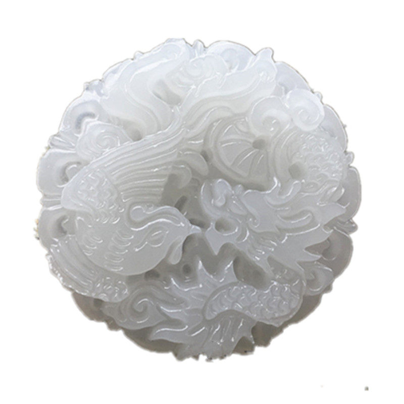 Натуральное украшение в форме дракона из белого нефрита, подвеска подходит для мужчин и женщин из нефрита с кисточками, дракон и феникс