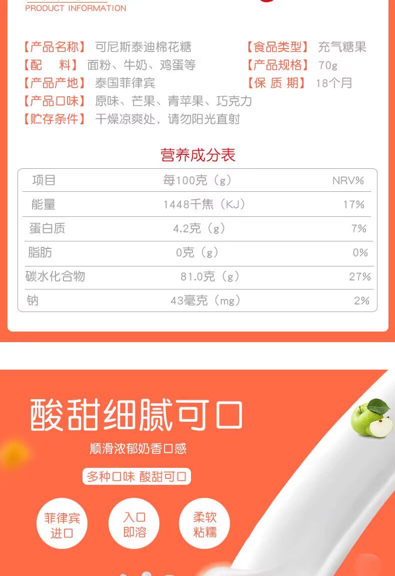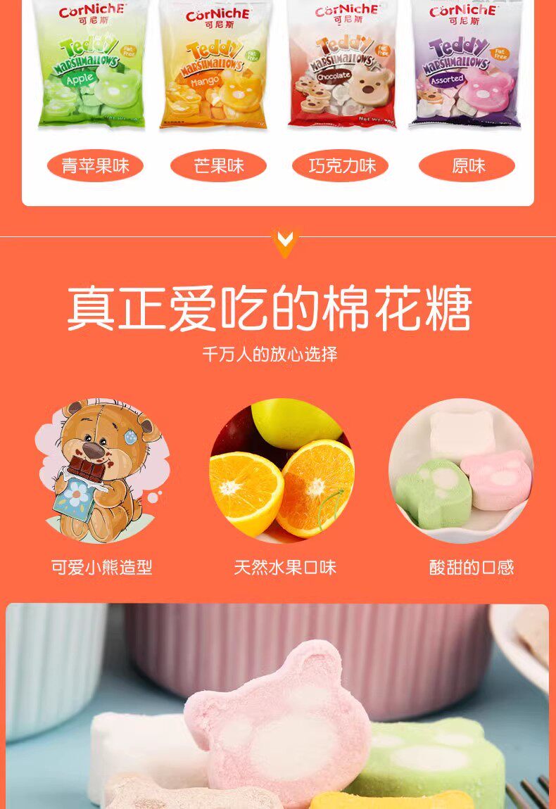 [Полная коробка] Филиппины импортировали Кенис Тедди Доза, ароматизированный зефир 70G*24 мешки с закусками украшения торта