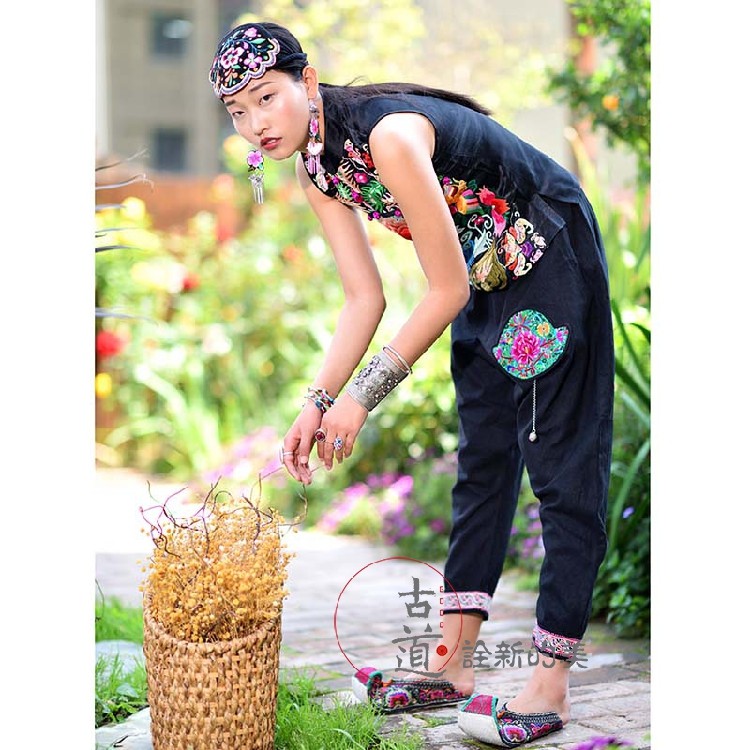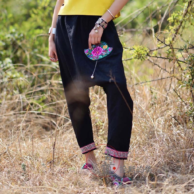 Этнический фонарь, оригинальные штаны, этнический стиль, новая коллекция, с вышивкой